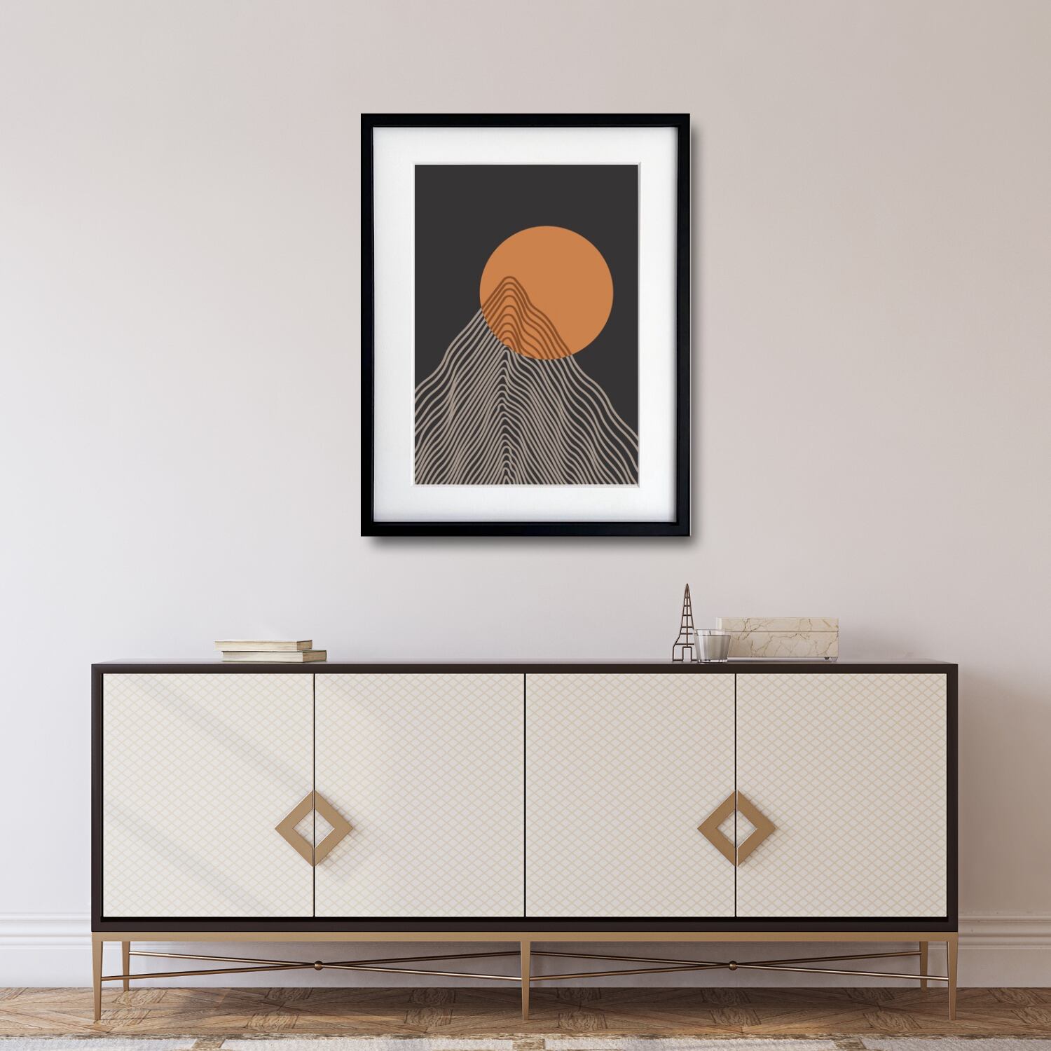 Precise|太陽と山をレトロに描いたボヘミアンミニマルアートポスター|北欧・ナチュラル空間に映える温かいデザイン| A3ポスター