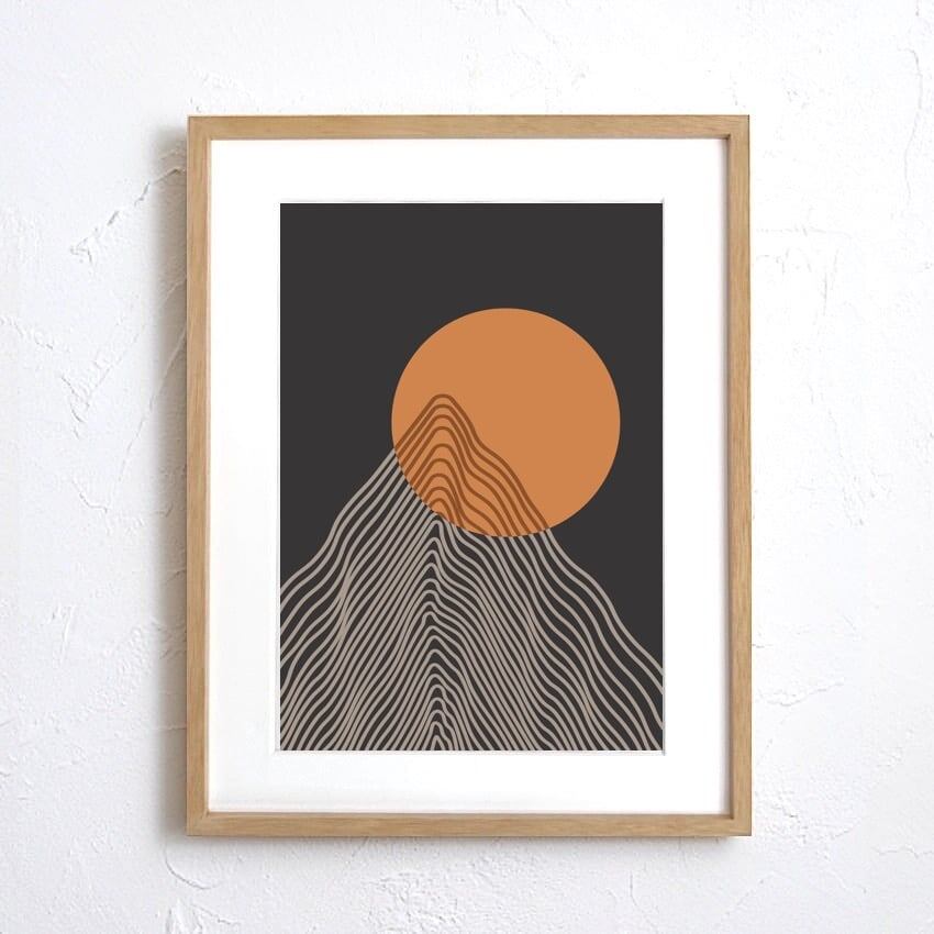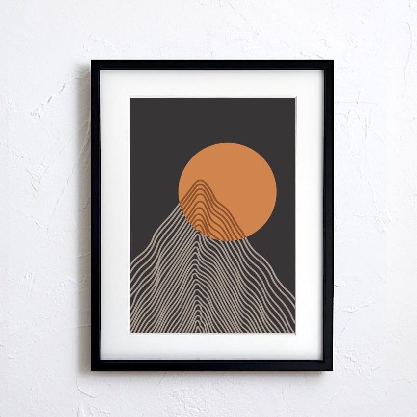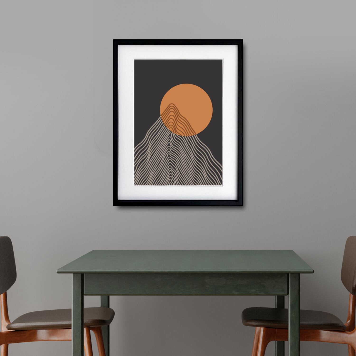 Precise|太陽と山をレトロに描いたボヘミアンミニマルアートポスター|北欧・ナチュラル空間に映える温かいデザイン| A2ポスター