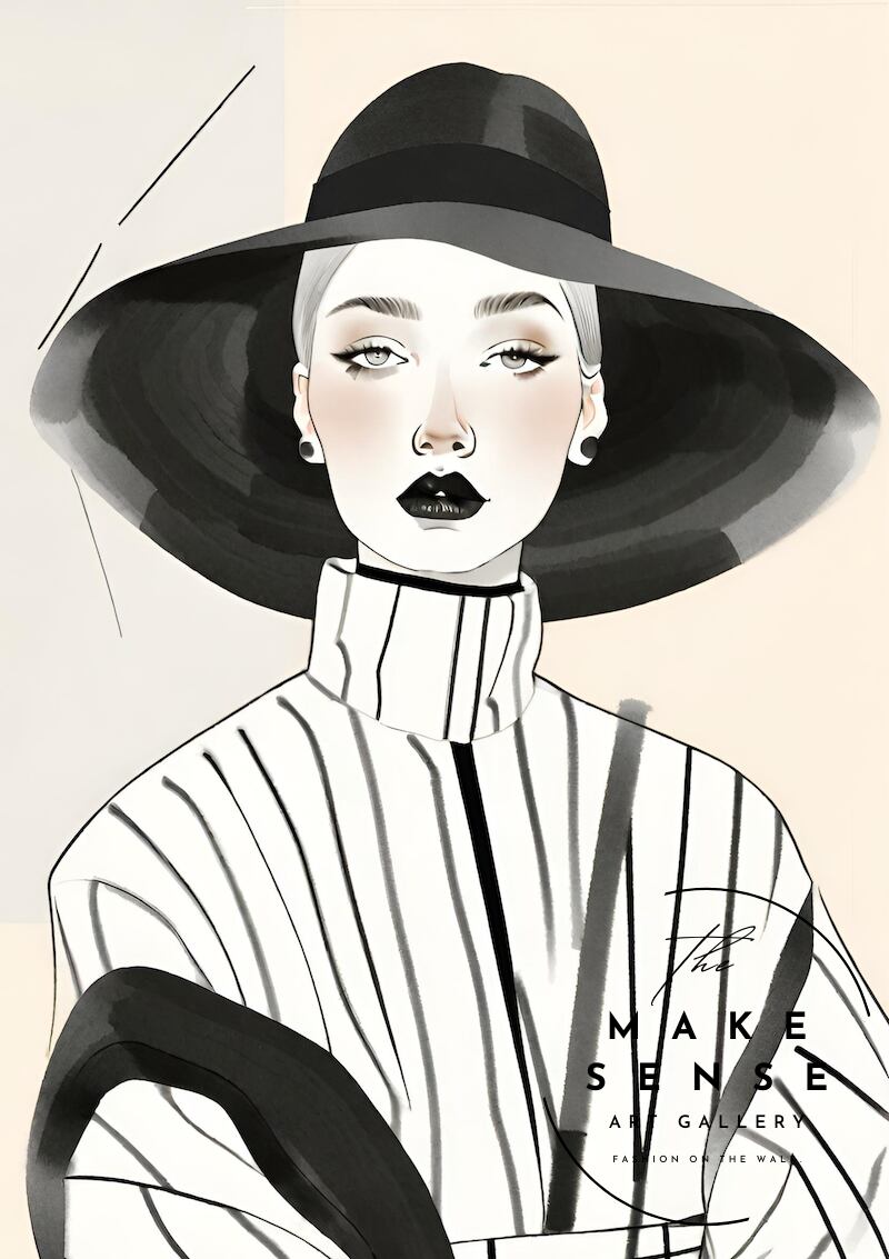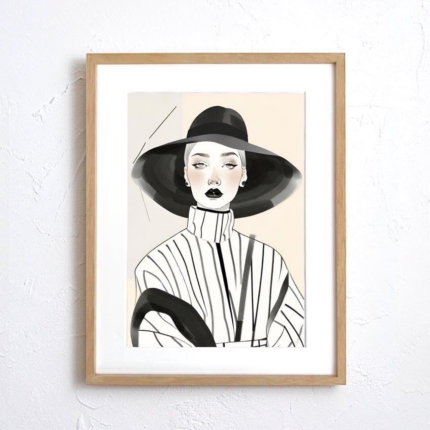 「Classic」は、女性のシルエットをミニマルな線と北欧風カラーで描いたエレガントなアートポスター。