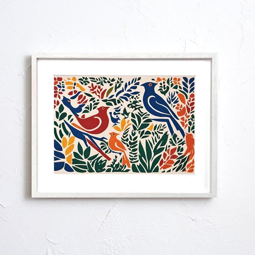 paradise|切り絵風ボタニカル×カラフルな鳥の北欧アートポスター|お部屋を優しく明るく彩るデザイン| A3ポスター