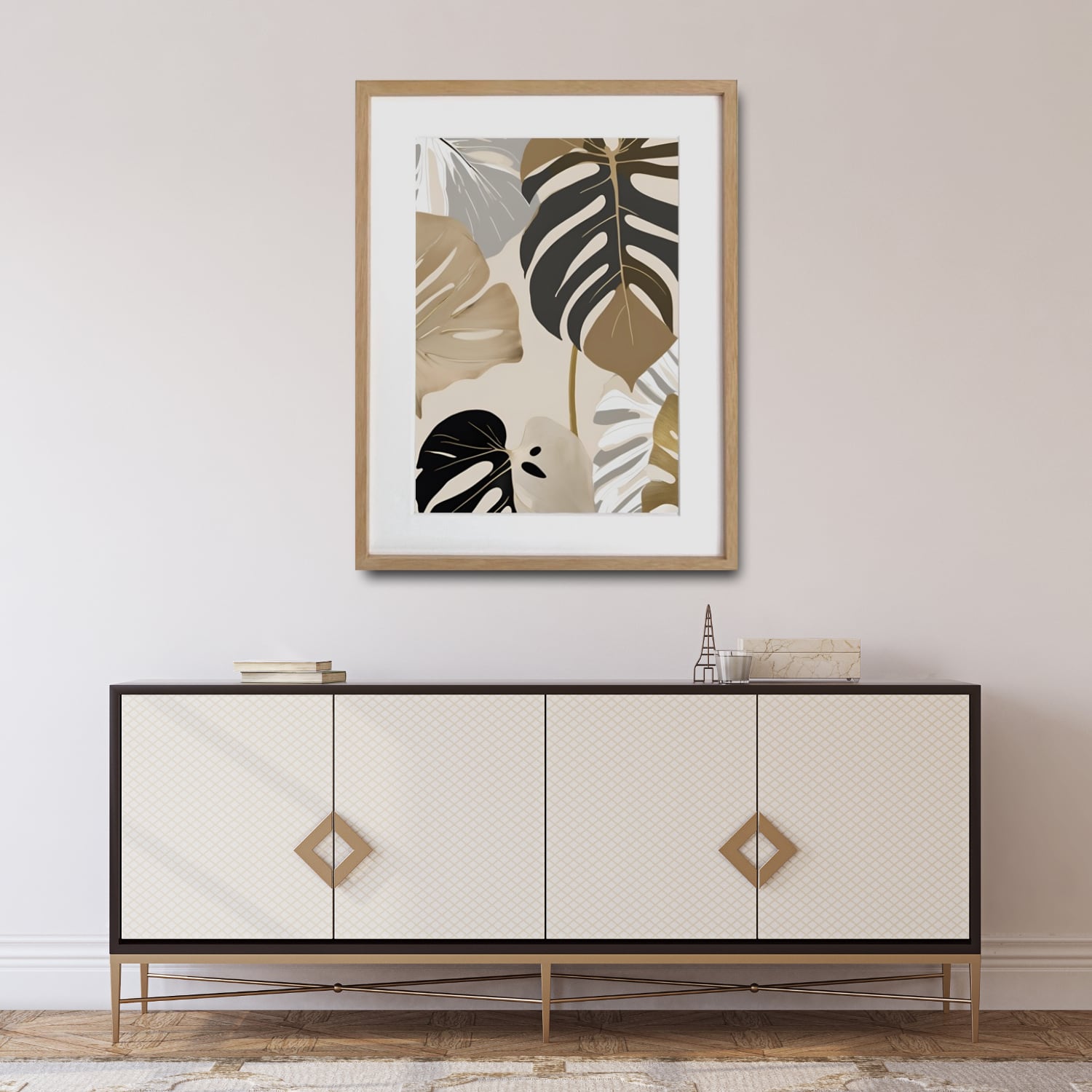モンステラが持つ「成長・繁栄」の象徴を、静かでエレガントな雰囲気で描いた一枚。