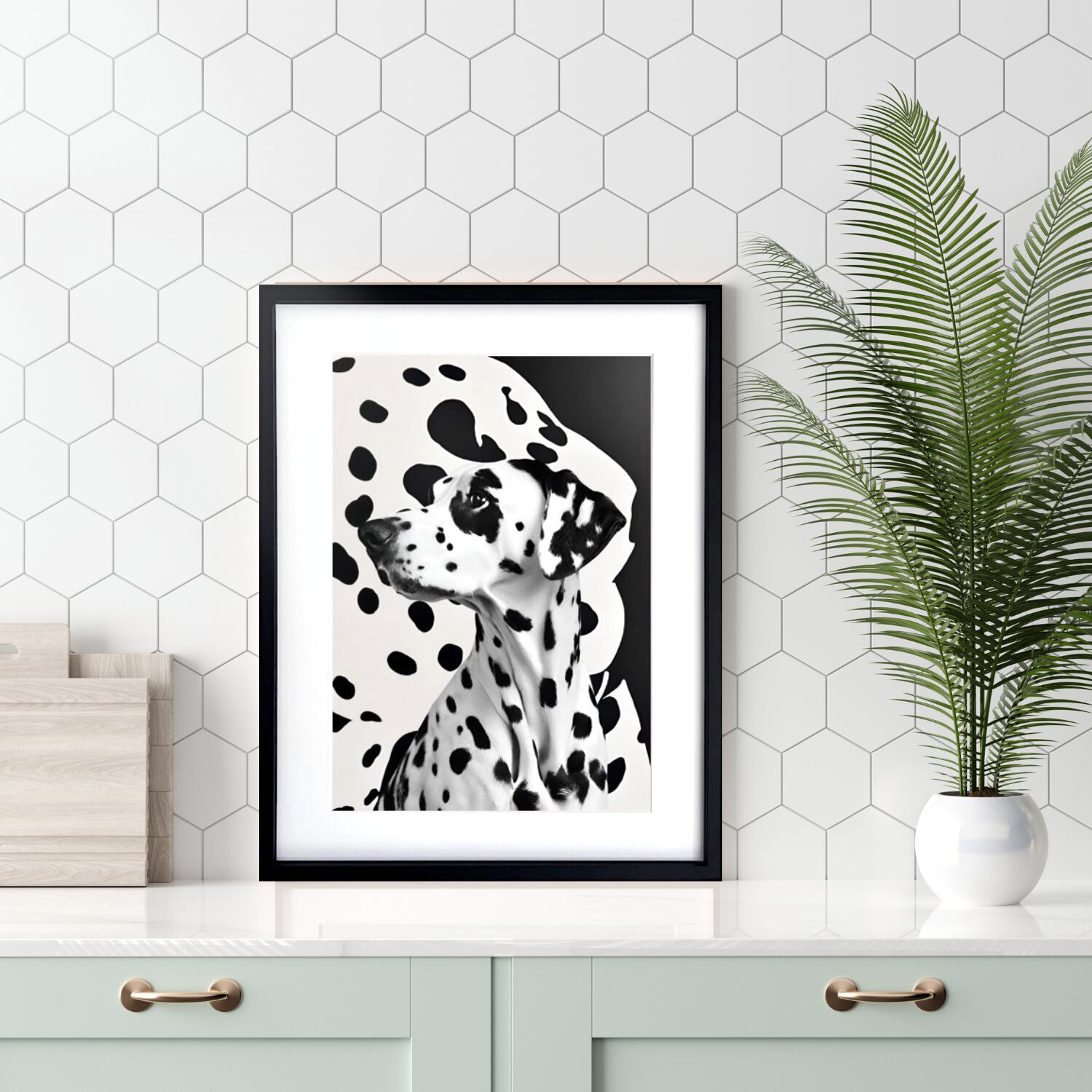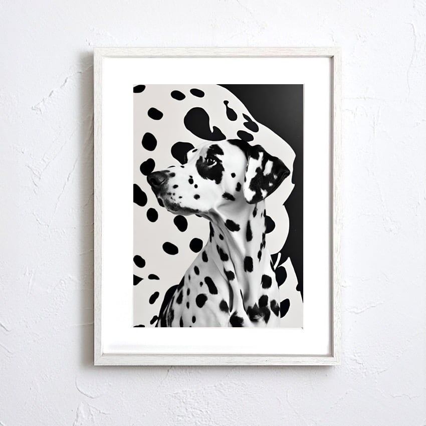 Dalmatian|モノクロが映えるダルメシアンのアートポスター|シンプルで洗練された犬モチーフ| 額縁セット A4ポスター