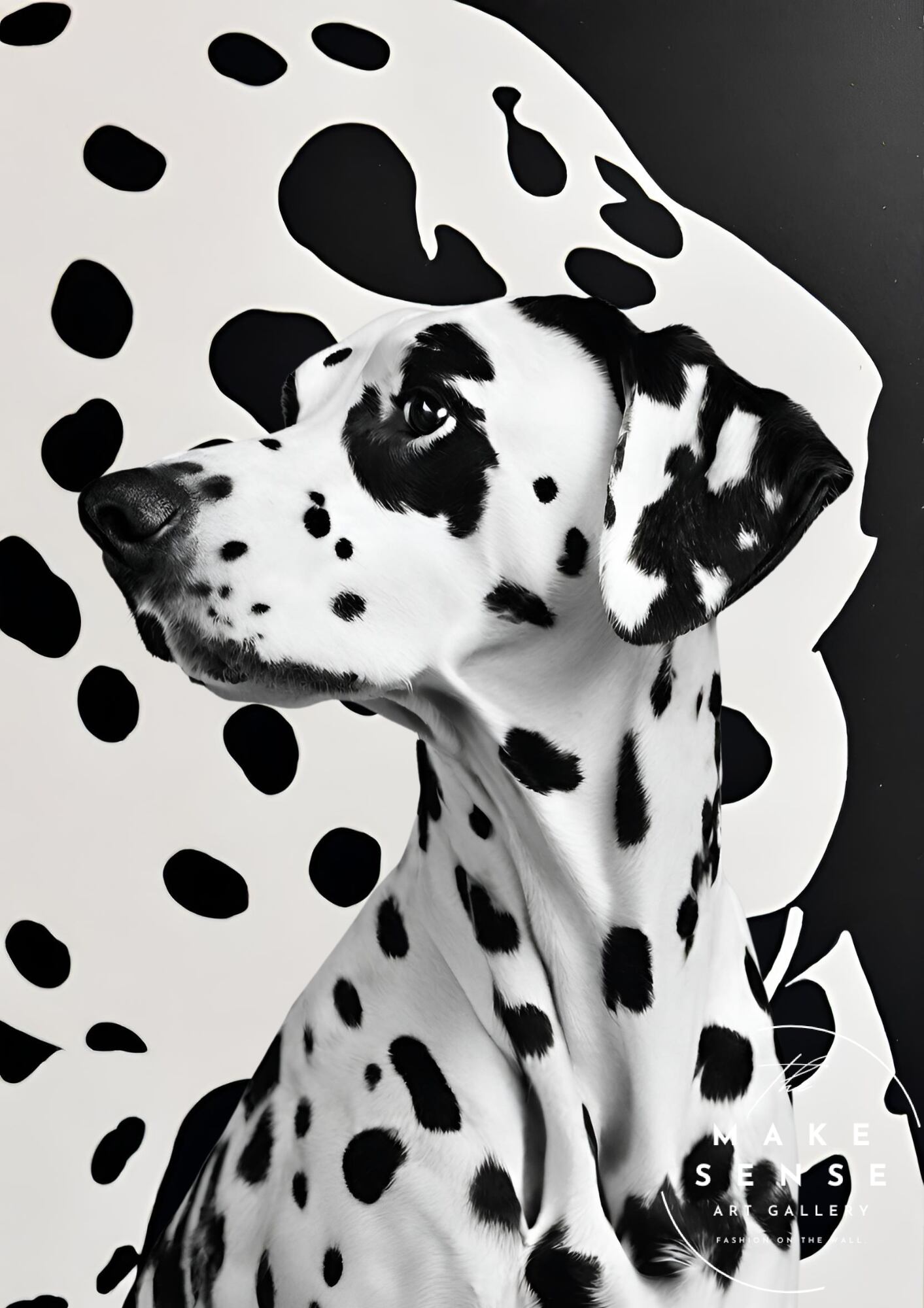 モノクロの美しさが際立つダルメシアンのアートポスター。