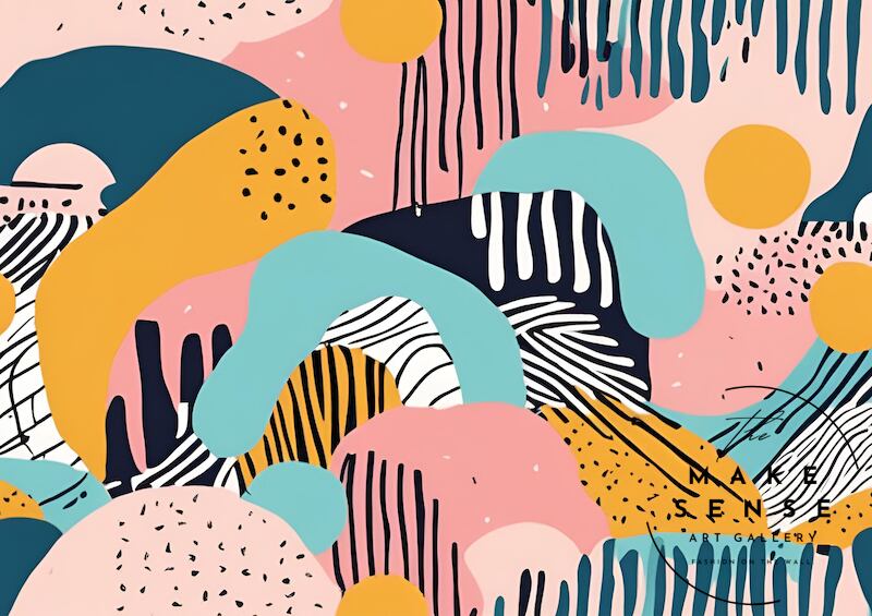 「quirky」は、レトロポップな色彩と遊び心ある抽象デザインが際立つアートポスター。