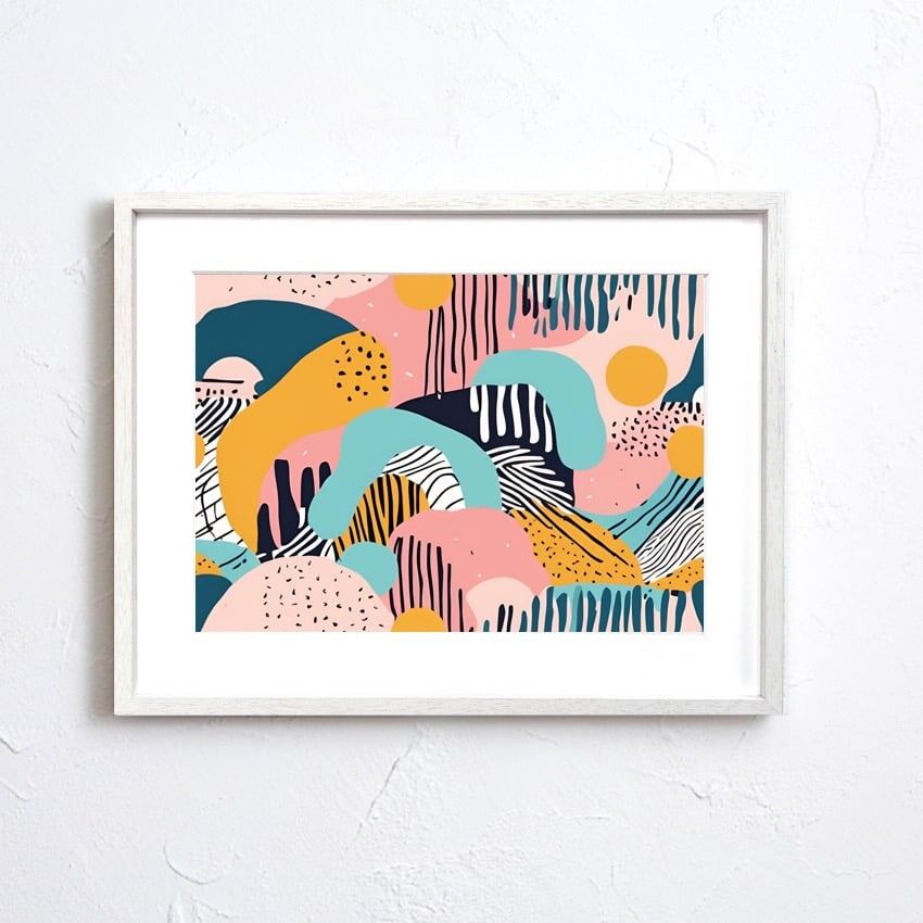 「quirky」は、レトロポップな色彩と遊び心ある抽象デザインが際立つアートポスター。