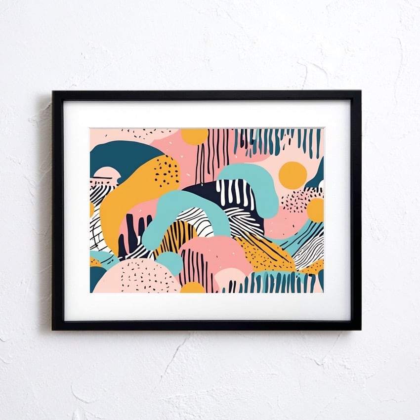 「quirky」は、レトロポップな色彩と遊び心ある抽象デザインが際立つアートポスター。