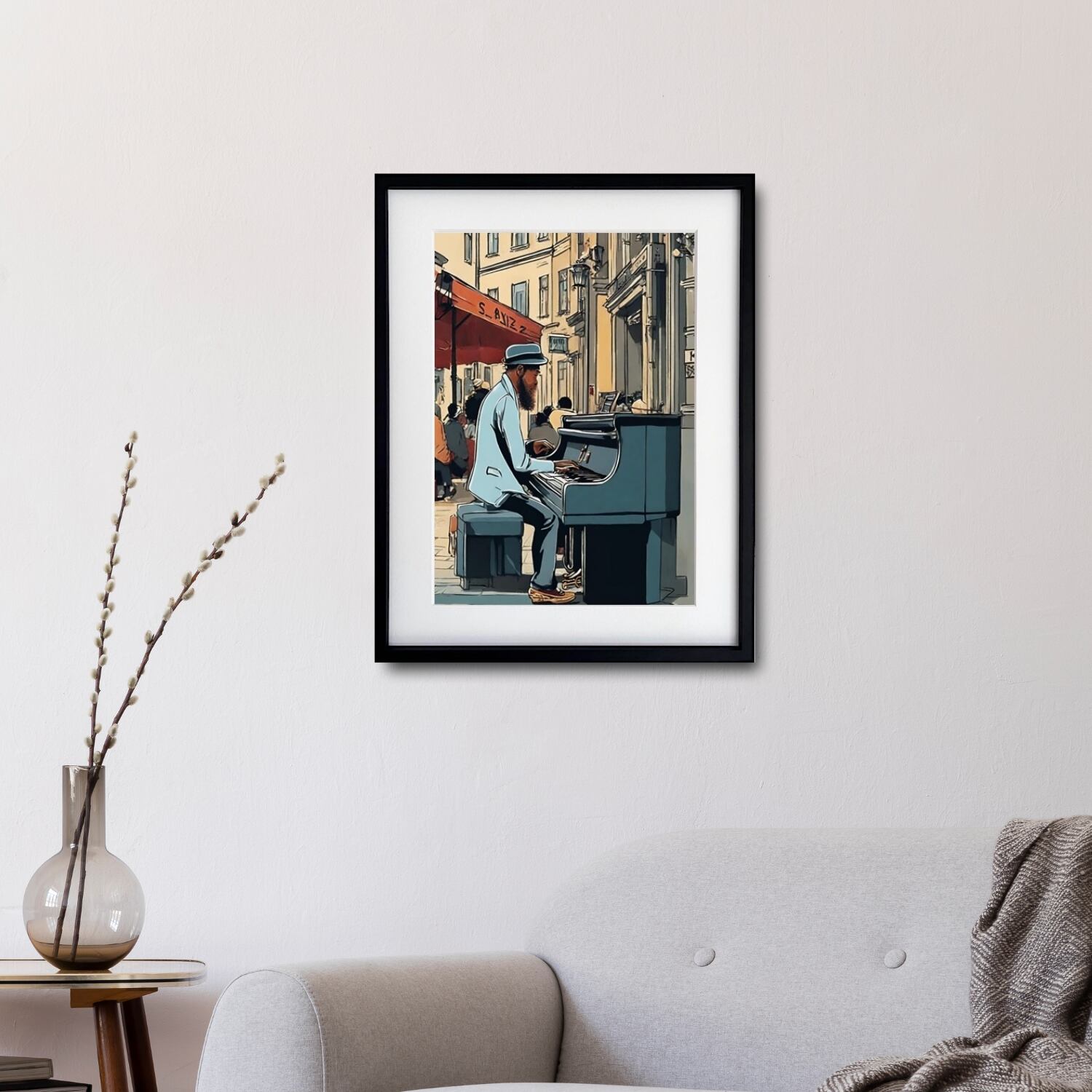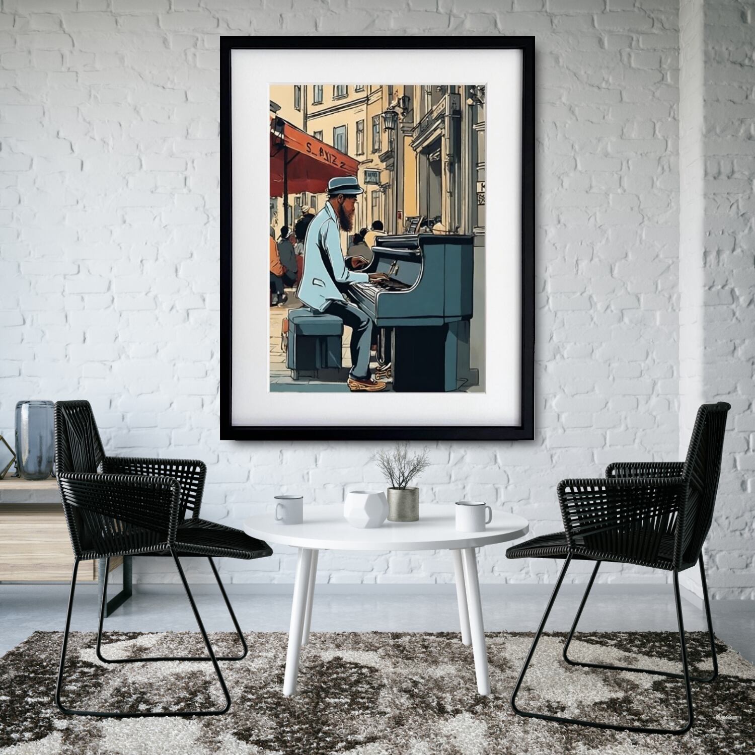 Street Musician|街角のピアノと大人の渋さを描くジャズアートポスター||音楽好きに響くモダンアートA3ポスター