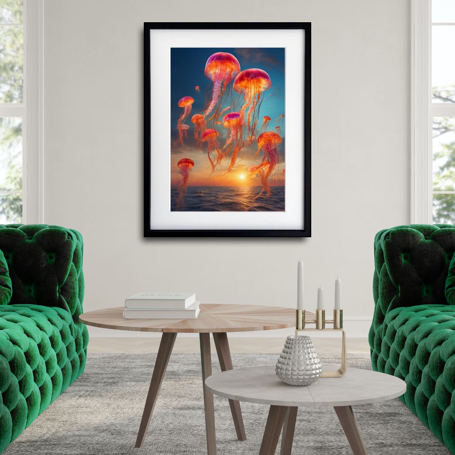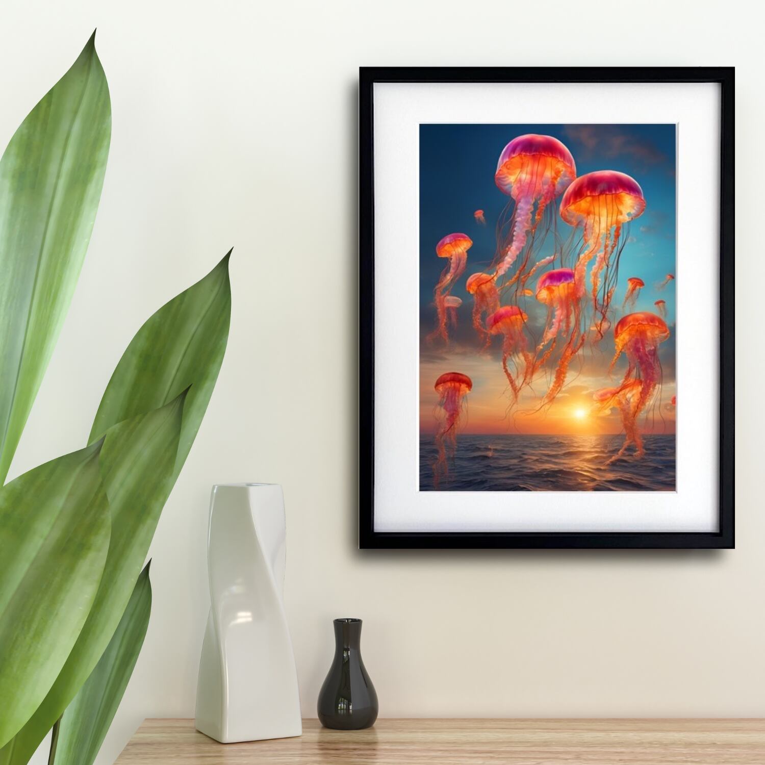 The Great Escape|クラゲが空へ舞う幻想アートポスター||北欧モダンに合う静けさと神秘のコラージュ作品A3ポスター