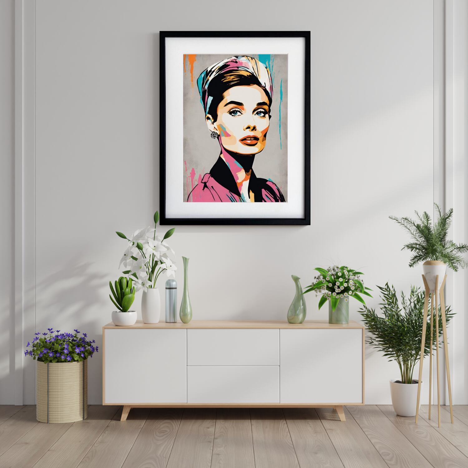 「Audrey Hepburn」は、時代を超えて愛される美しさを、鮮やかな抽象表現で描いたモダンアートポスター。