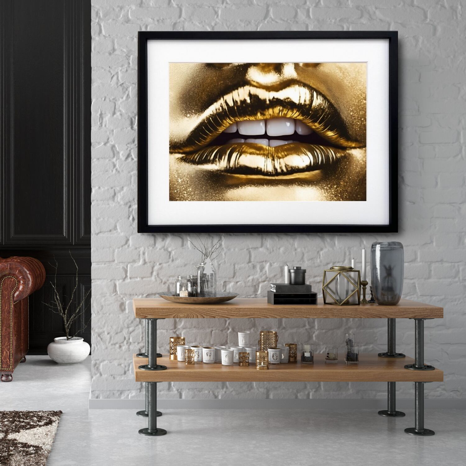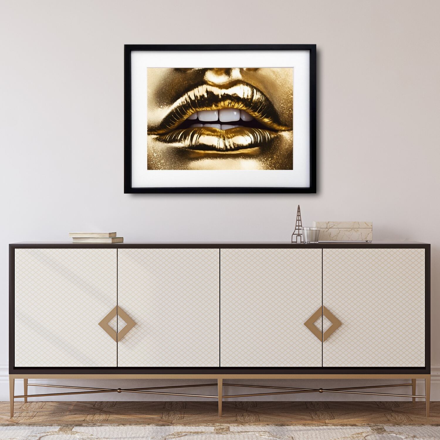 「GOLD KISS」は、ゴールドの輝きで空間を瞬時にラグジュアリーへ引き上げるアートポスター。