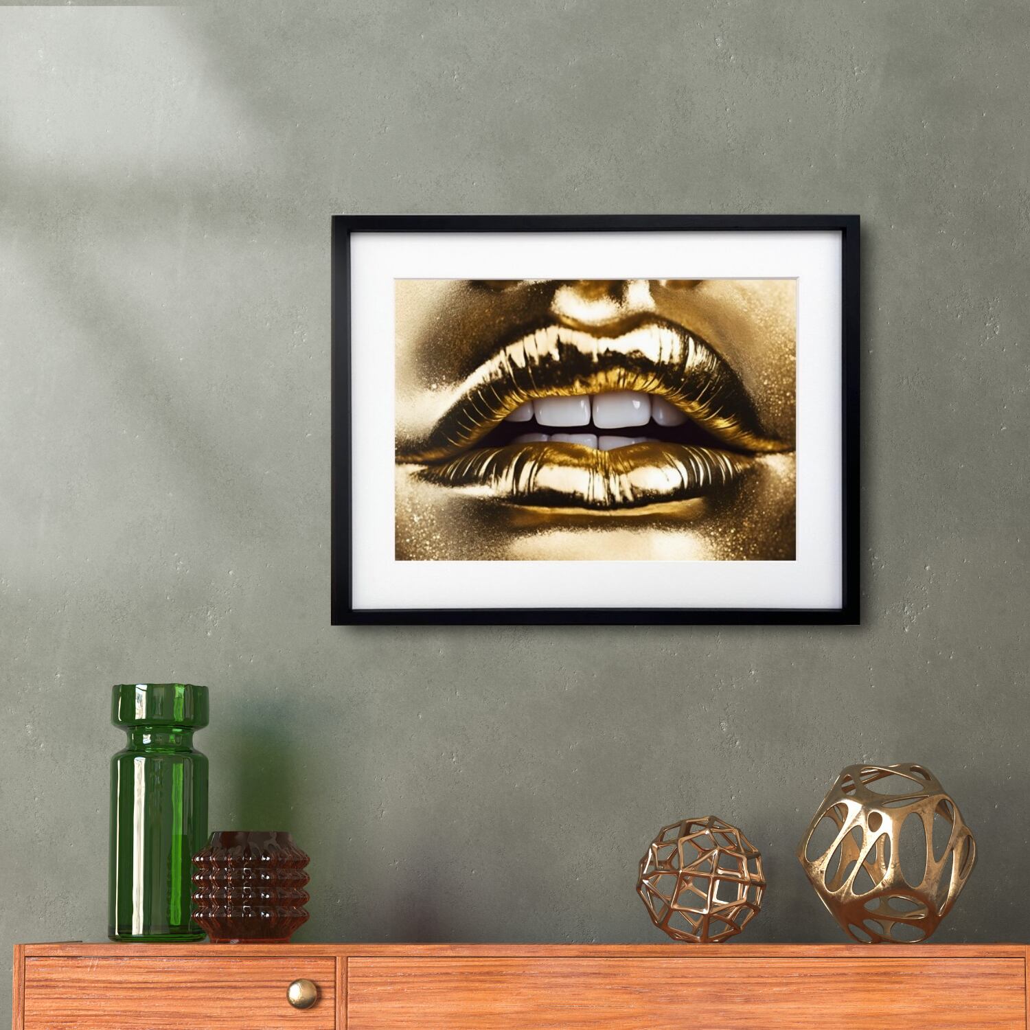 GOLD KISS|ゴールドの唇が輝くラグジュアリーアートポスター||モダン空間を格上げする高級デザインA4ポスター