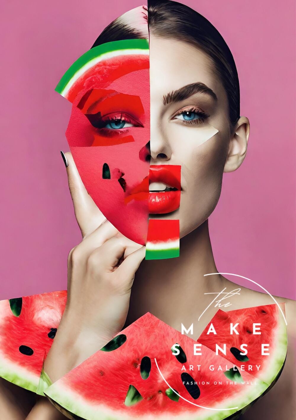 「Watermelon Woman」は、女性ポートレートとスイカの色彩を組み合わせた、遊び心あふれるコンテンポラリーアート。