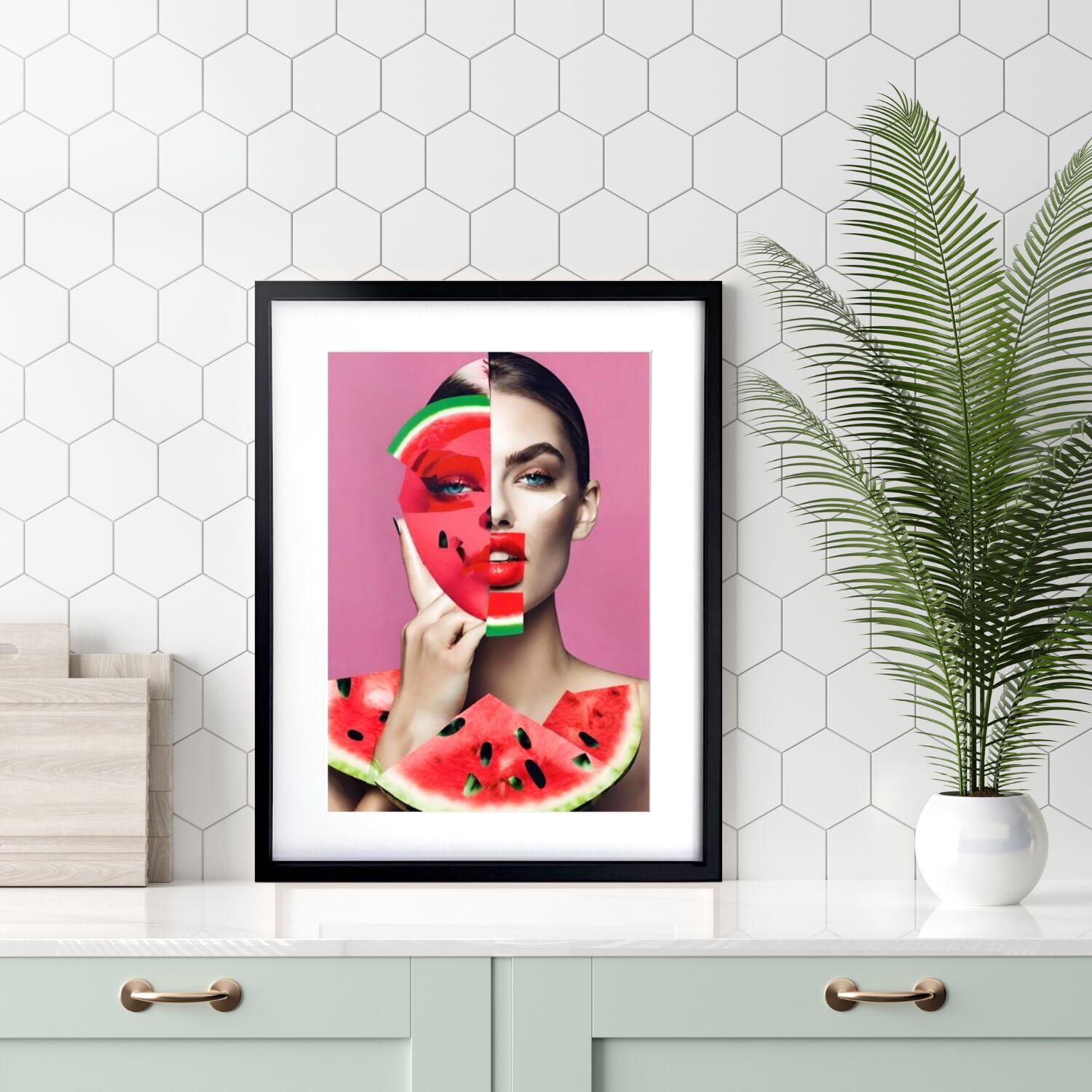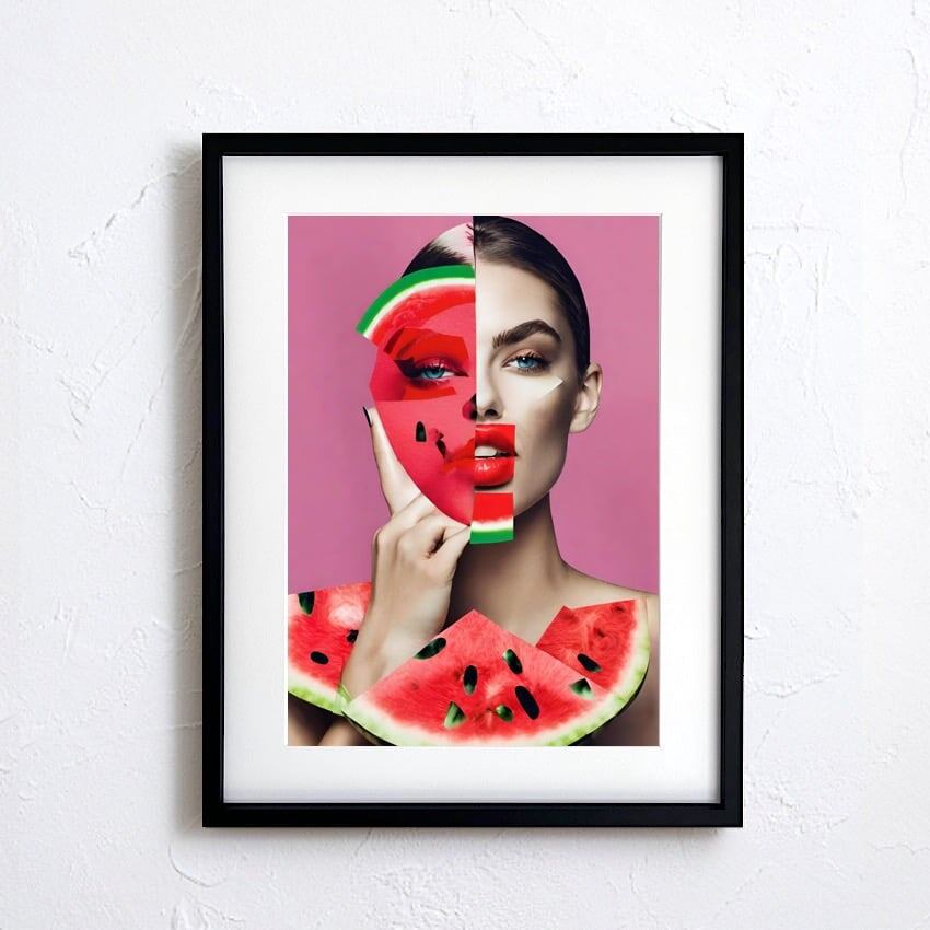 Watermelon Woman|夏色ポップアート×女性コラージュの爽やかアートポスター||リビングを彩る涼感デザインA3ポスター