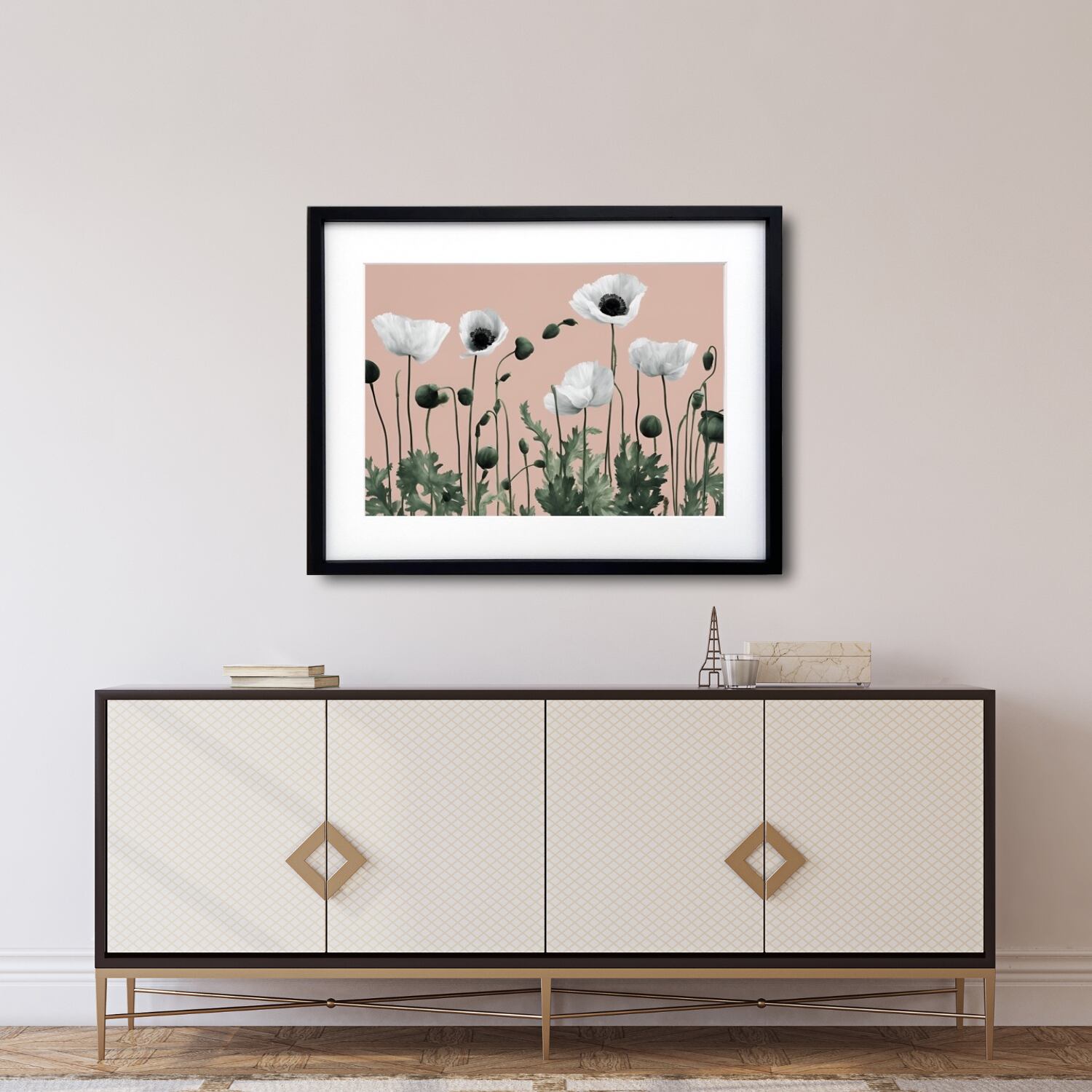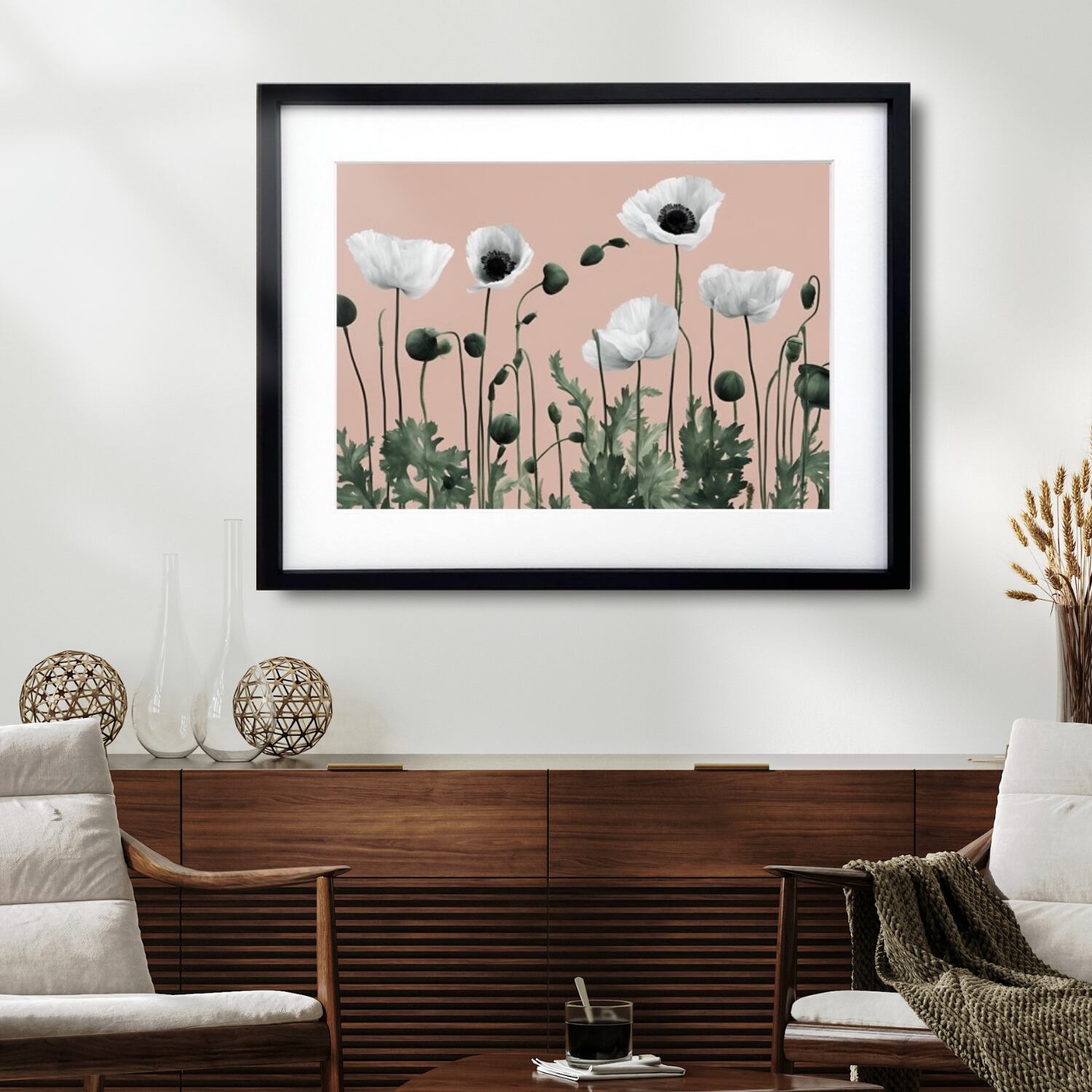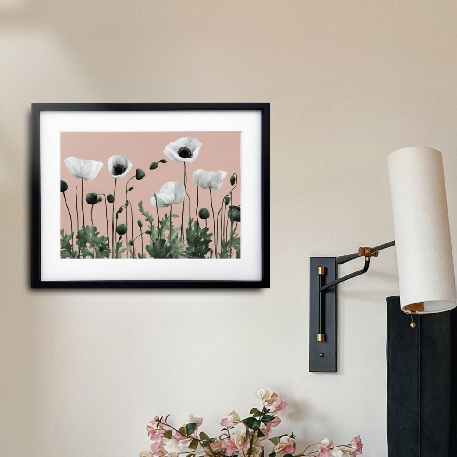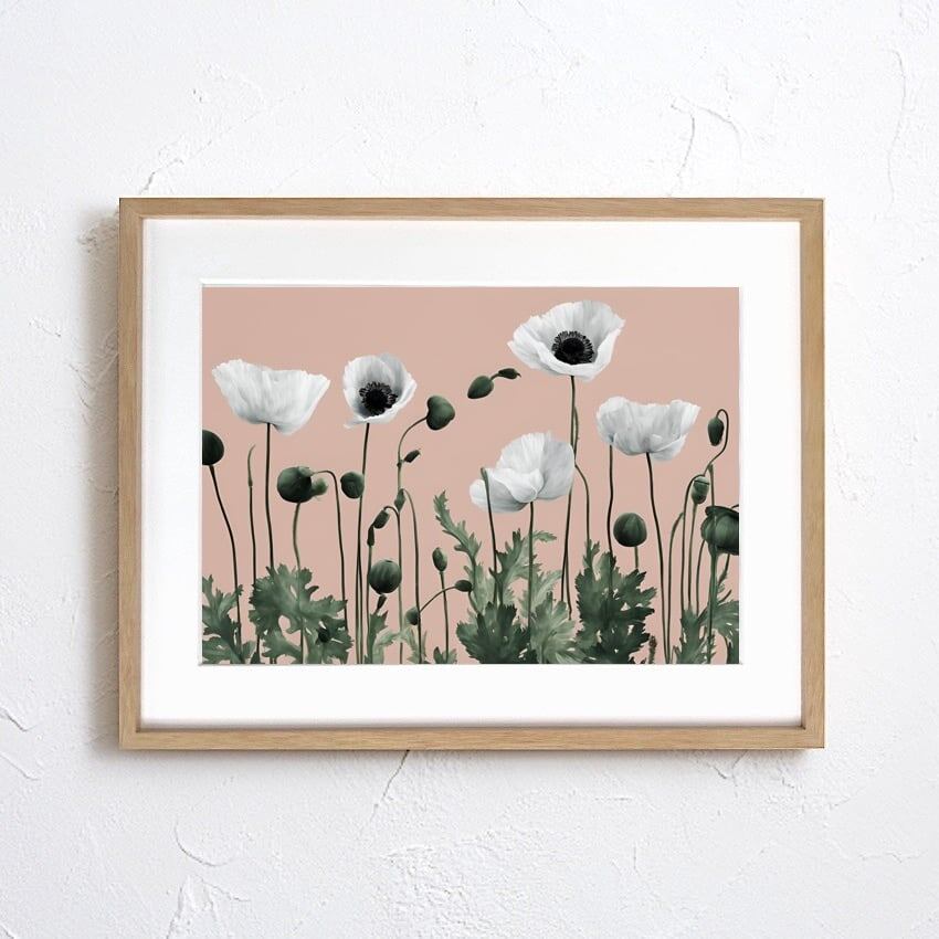 Crescendo|優雅に咲くポピーのミニマルボタニカルアートポスター||・国内生産A3ポスター