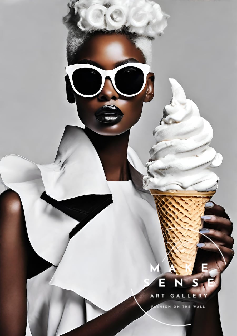 「Sweatest Woman」は、アイスクリームのようなヘアデザインと、優雅な黒人女性を描いたユニークなポップアート。