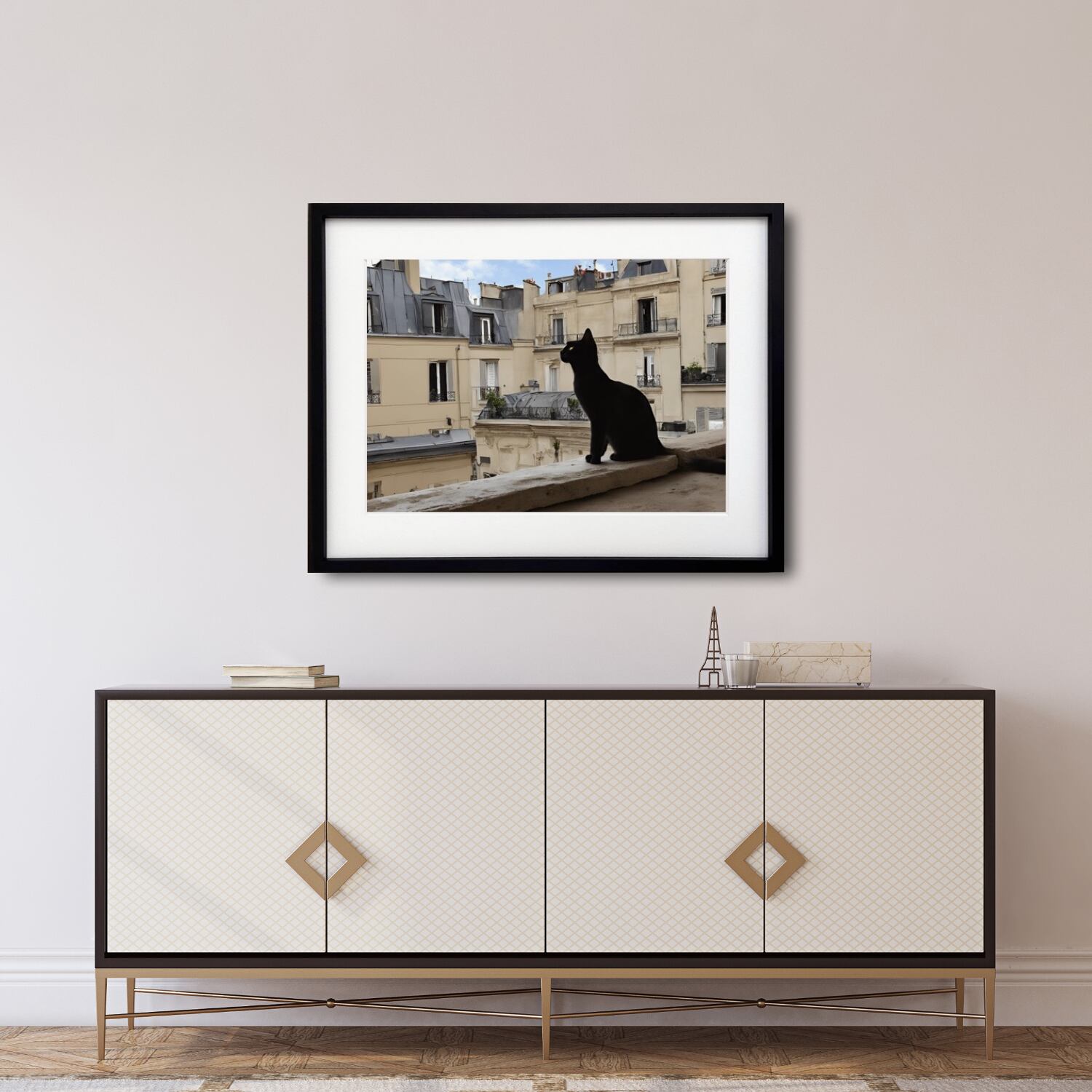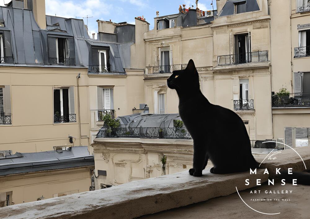 【パリの黒猫を描いたエレガントな一枚】