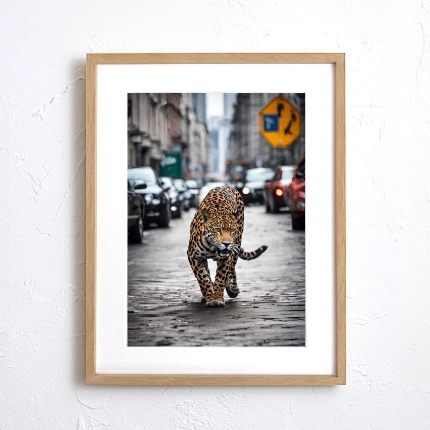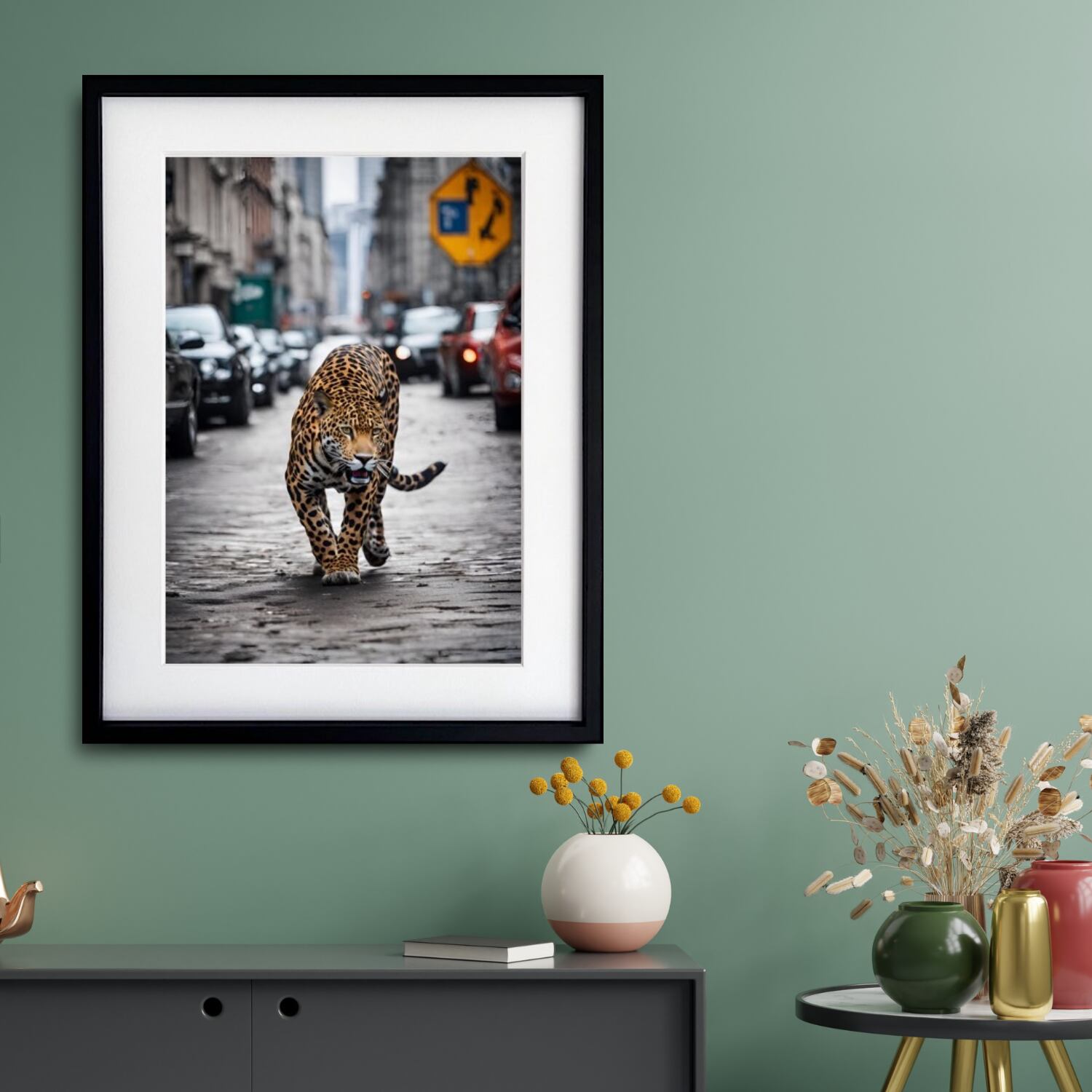 Jaguar Trip|都会を旅するジャガーの非現実アートポスター|モダン空間を個性的に彩る一枚||A3ポスター