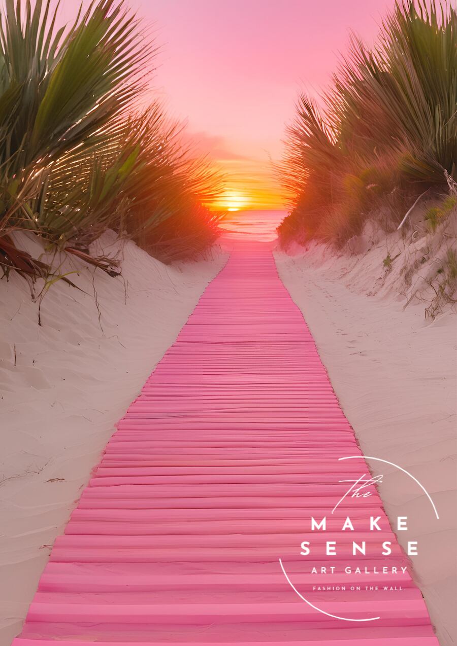 「road to sunset」は、海へ沈む夕日へと続く一本道を描いたアートポスター。