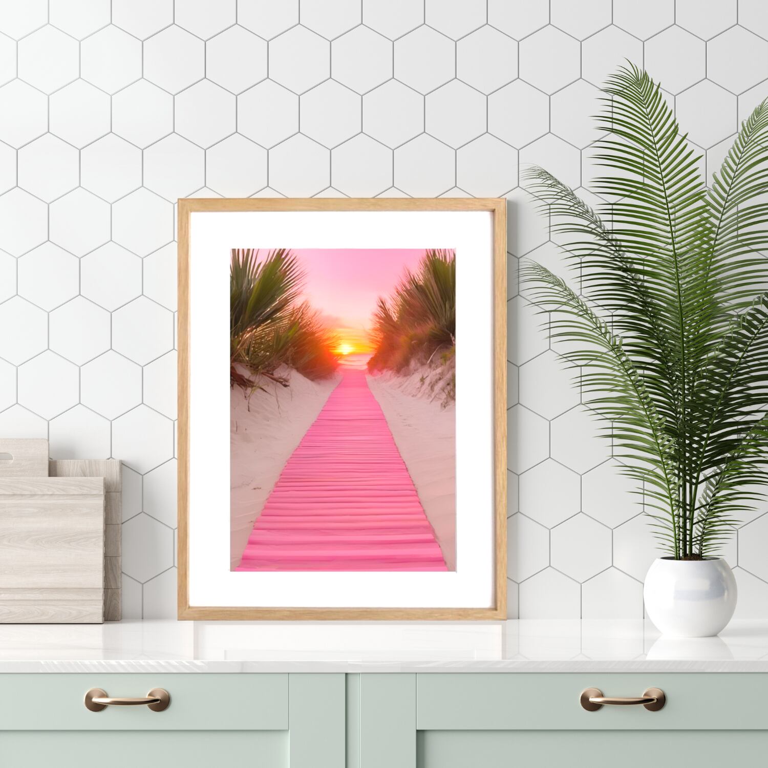 road to sunset|海へ沈む夕日へ続く道のアートポスター|北欧ナチュラルに合う癒しの一枚||A7ポスター