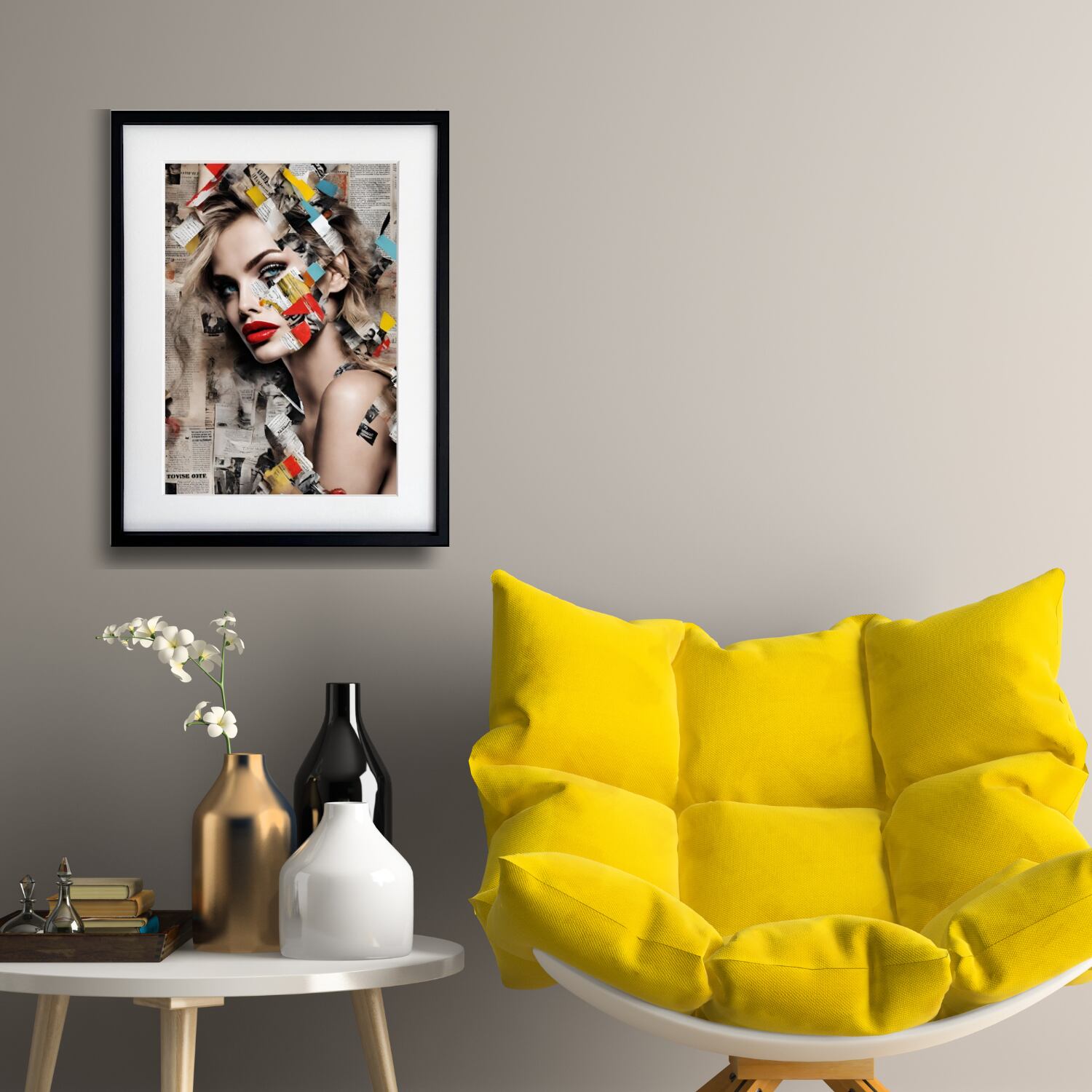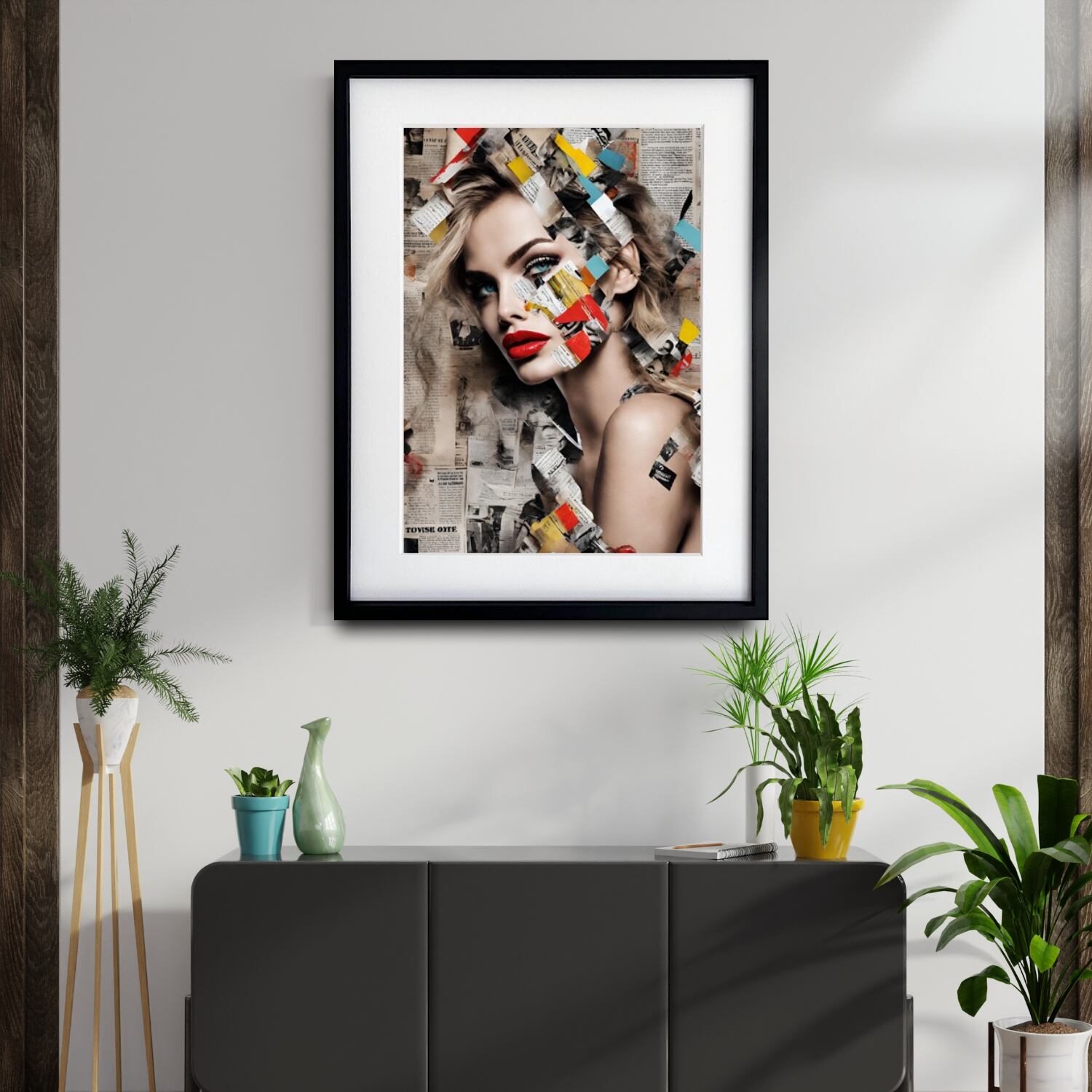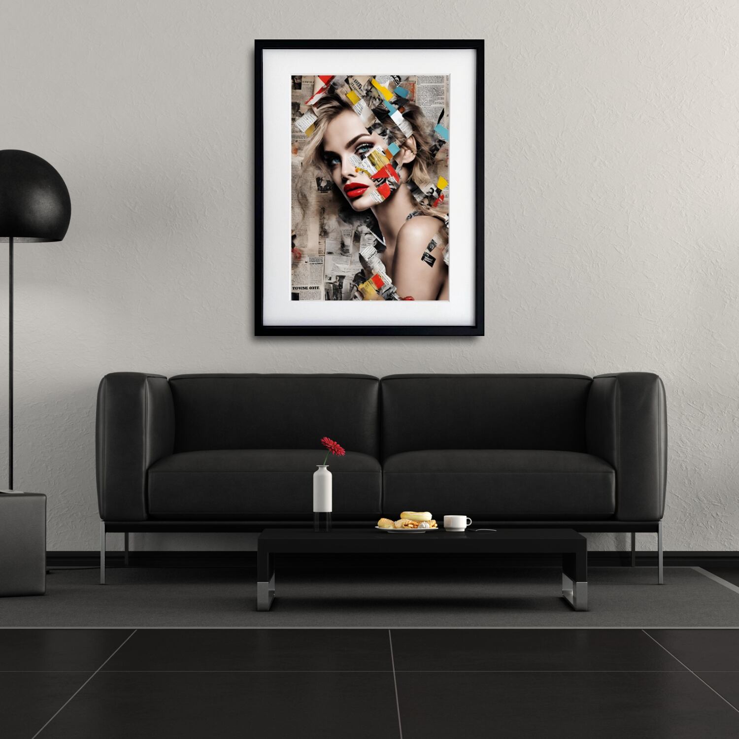 Creativity|新聞コラージュのコンテンポラリーアートポスター|モノトーン空間に映える都会的デザイン||国内生産・A4ポスター