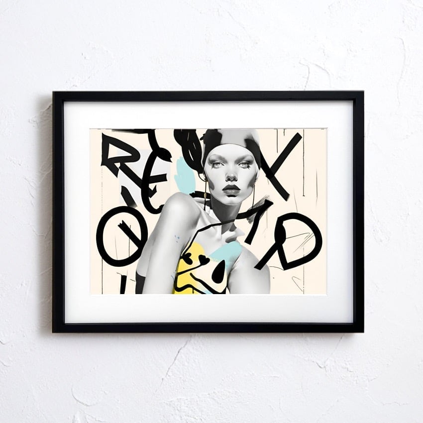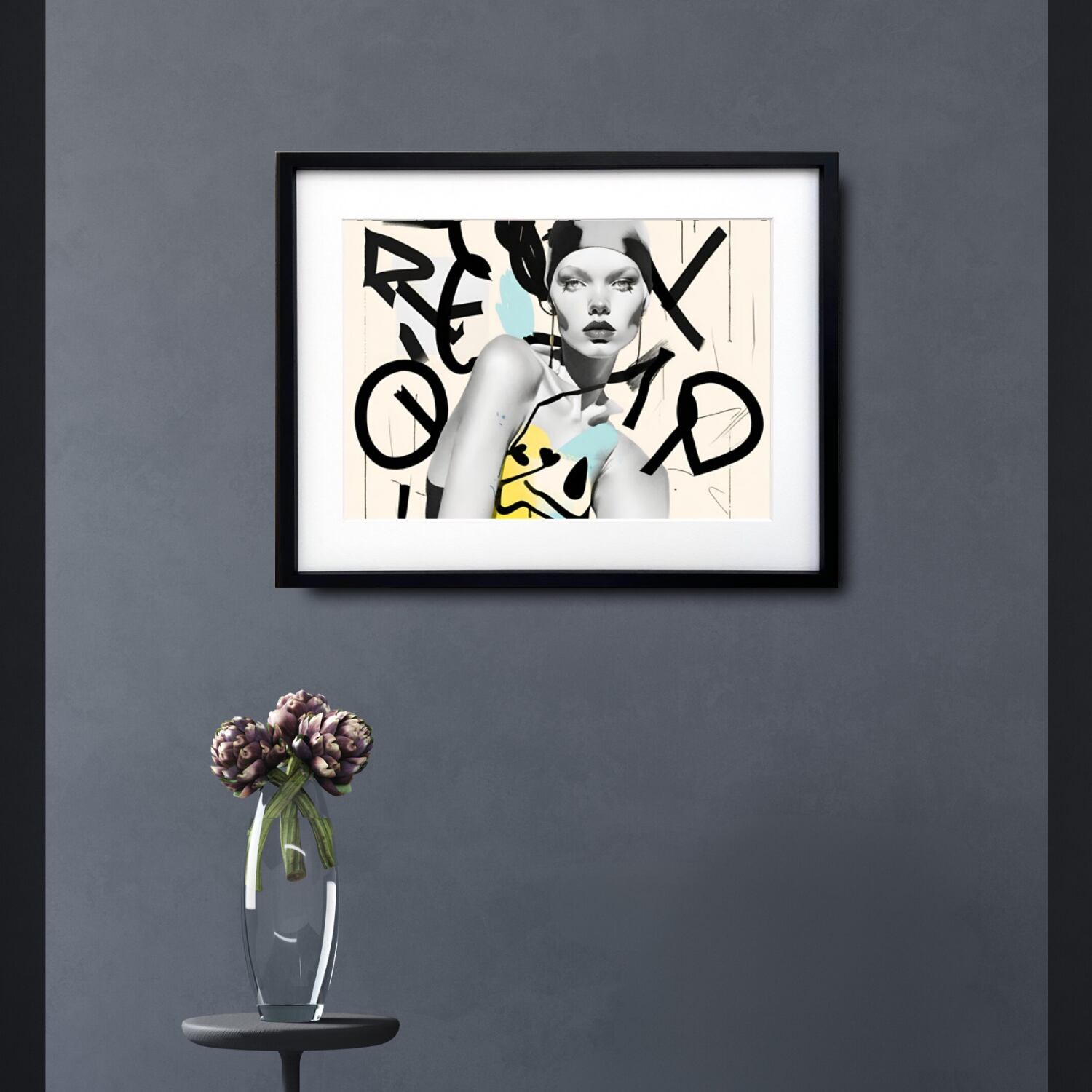 「Isolated」は、モノクロの女性ポートレートに、くすみカラーの抽象タッチを重ねた北欧モダンなアートポスター。