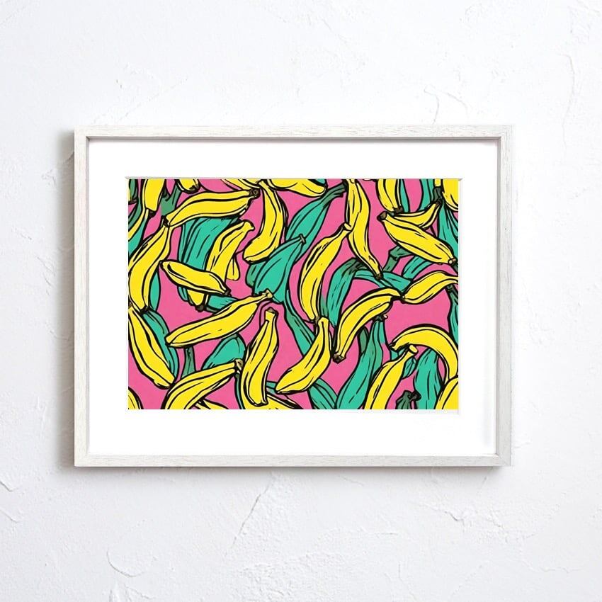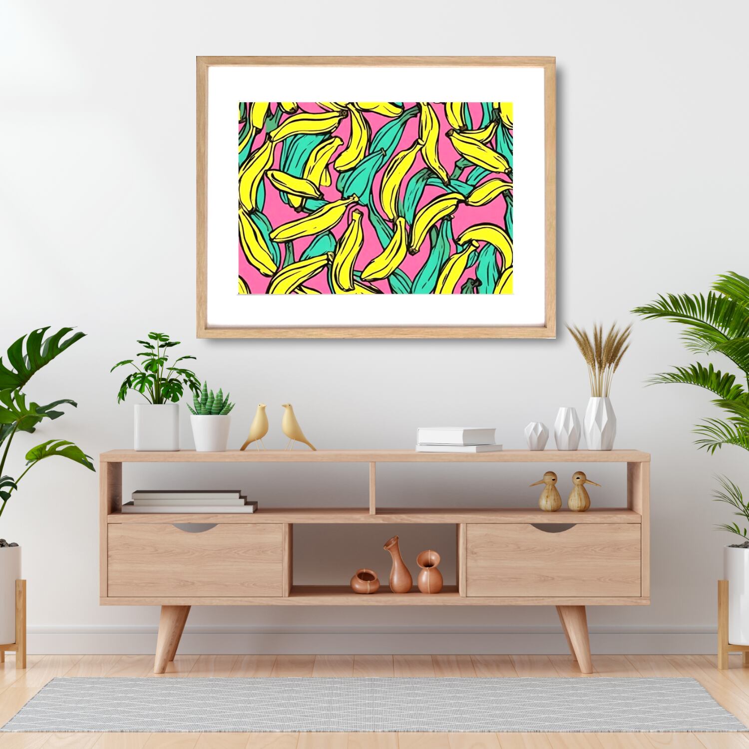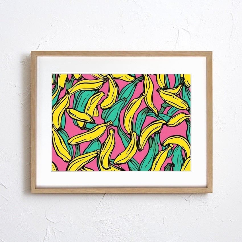 BANANA|抽象バナナのカラフルアートポスター|遊び心とモダンを両立した一枚|額縁付き完成品|国内生産|A4ポスター