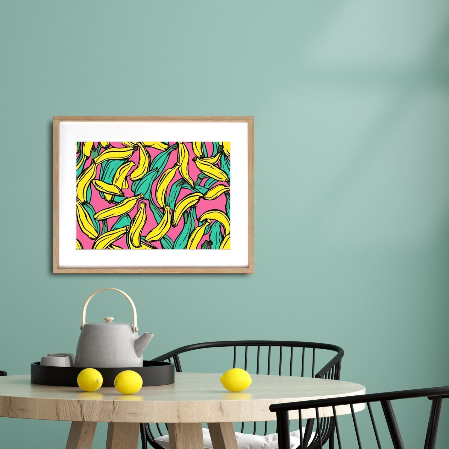 BANANA|抽象バナナのカラフルアートポスター|遊び心とモダンを両立した一枚|額縁付き完成品|国内生産|A3ポスター