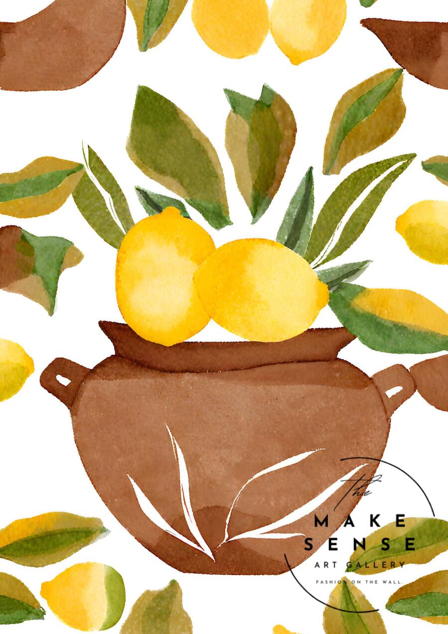 「Lemon」は、果実のエネルギーと北欧デザインの静けさを併せ持つ抽象アート。