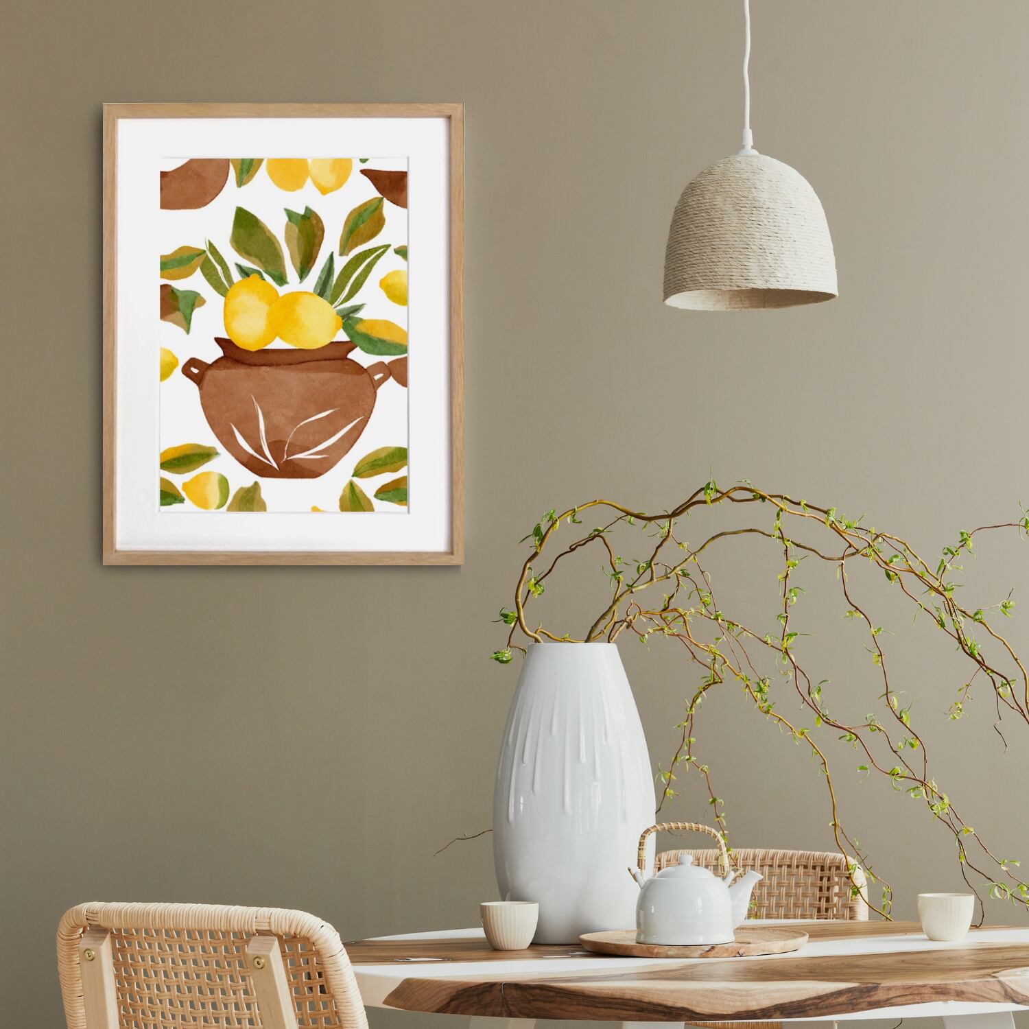 Lemon|北欧ミニマルの抽象レモンアートポスター|差し色が映えるシンプルデザイン|額縁付き完成品|A2ポスター