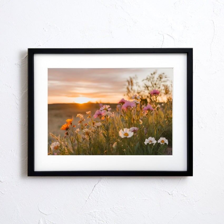 Lavish|夕暮れの花畑アートポスター|オレンジに染まる優雅な光景が広がる癒しの1枚|北欧ナチュラルに合う額縁付き完成品|A4ポスター