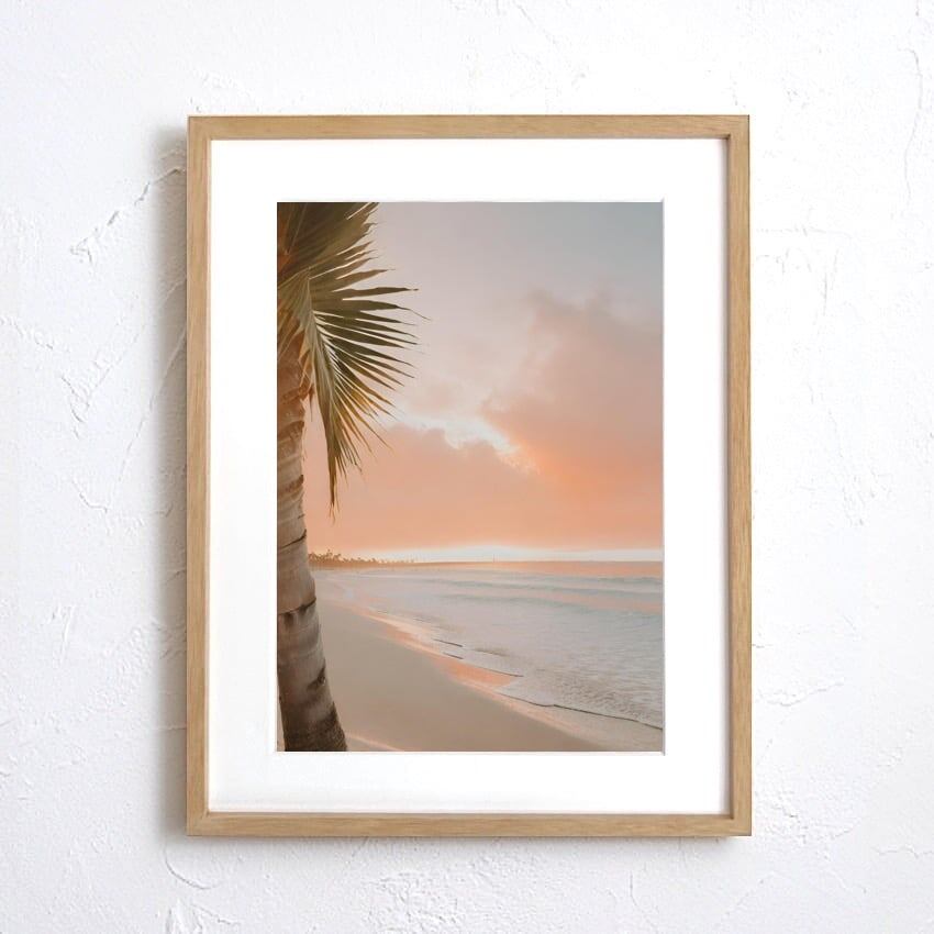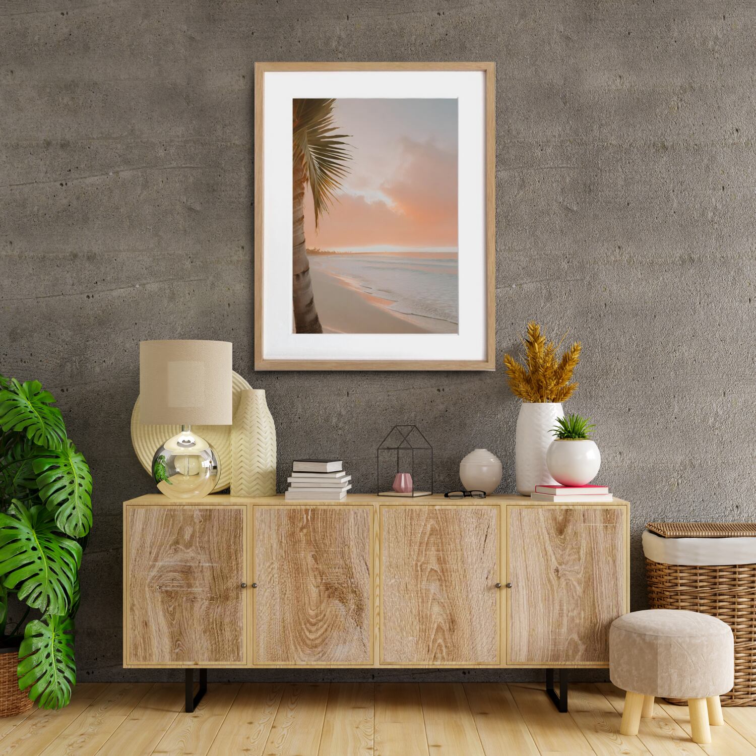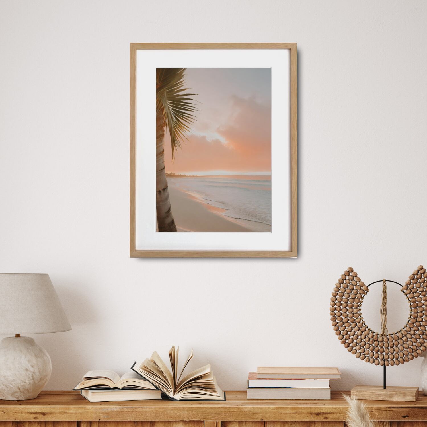 today was good day..|サンセットビーチの癒しアートポスター|柔らかなピンク空が心を整えるリゾートデザイン|額縁セット|A2ポスター
