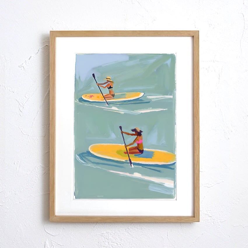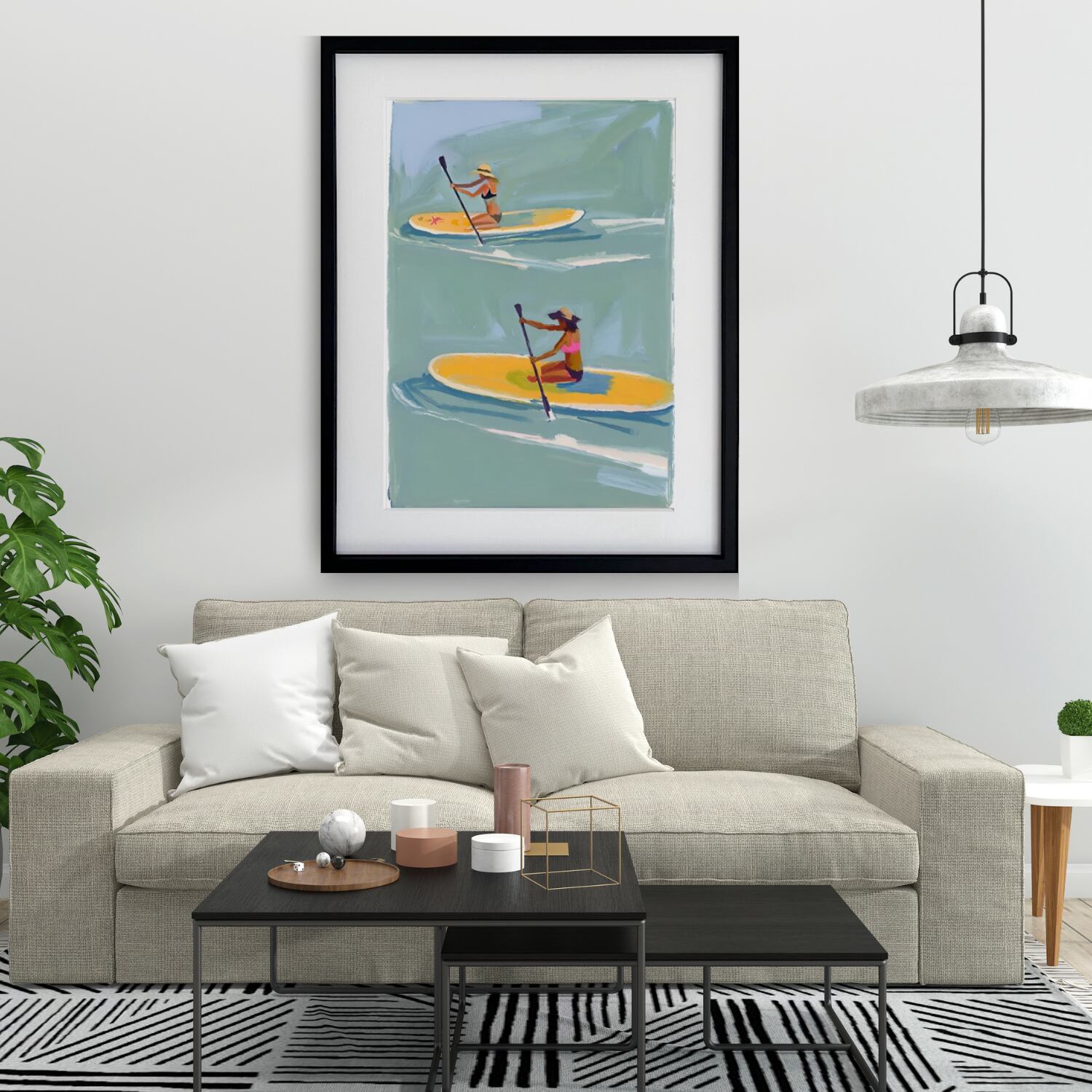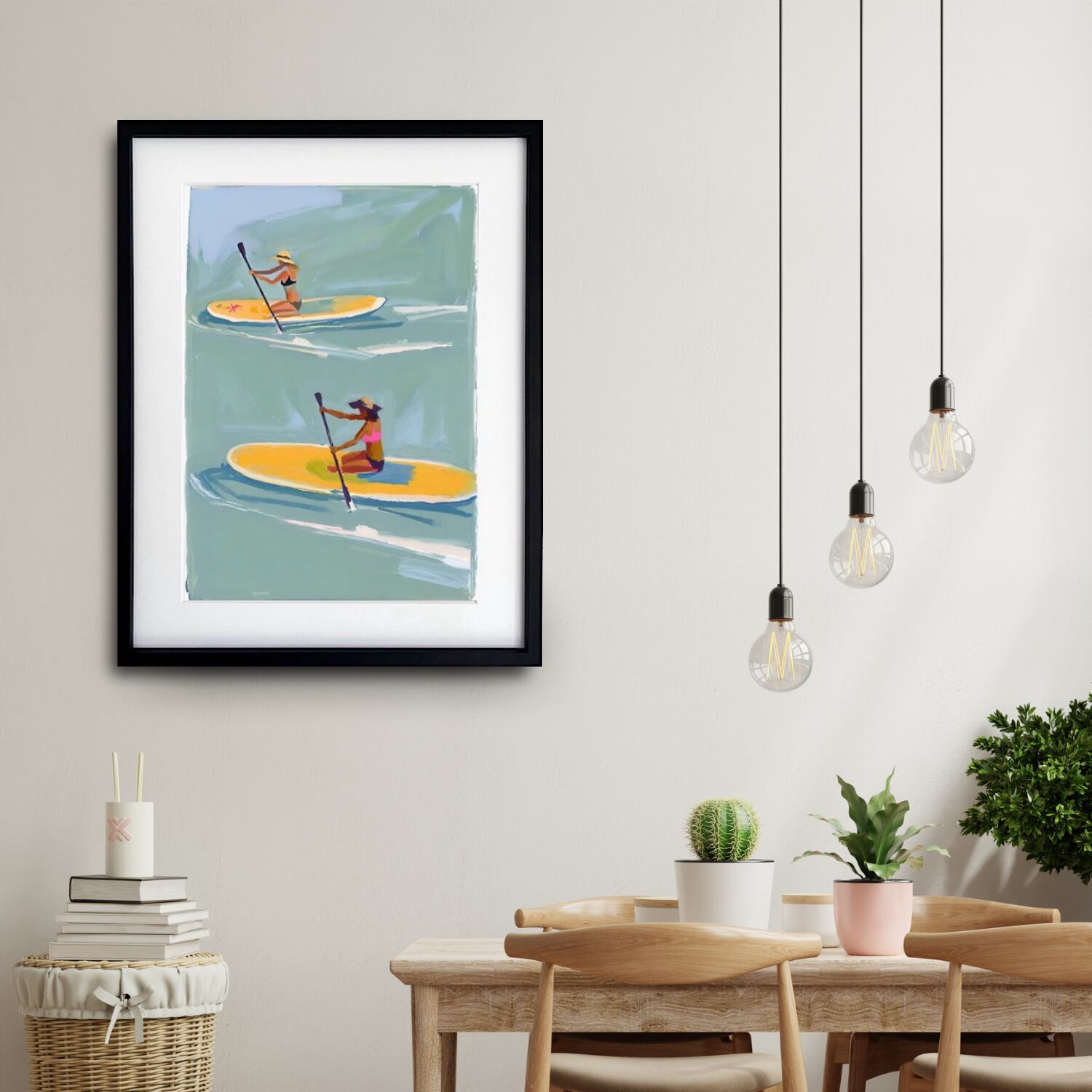 Sup|レトロな癒しのSUPアートポスター|北欧ナチュラル空間に調和する水辺の穏やかなドローイング|額縁セット|国内生産・A4ポスター