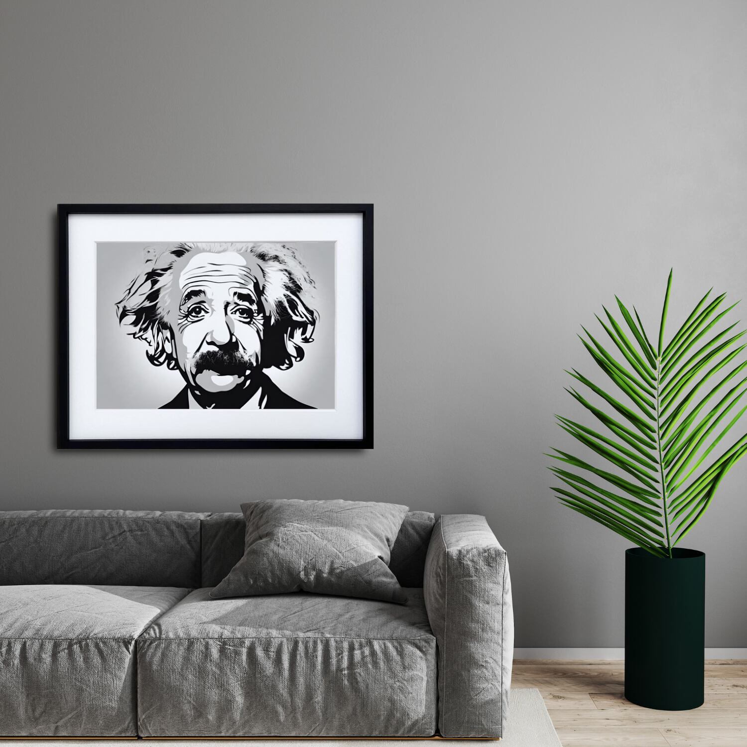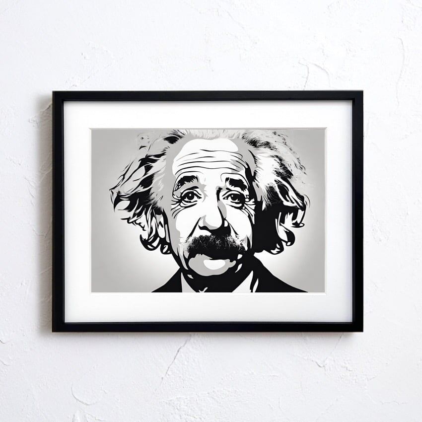 Albert Einstein|知性とユーモアを描いた現代アートポスター|書斎・オフィスに最適|額縁セット・国内生産・A3ポスター