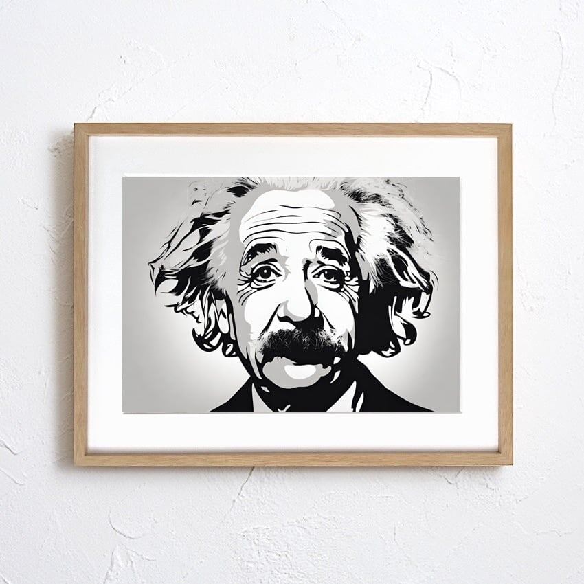 Albert Einstein|知性とユーモアを描いた現代アートポスター|書斎・オフィスに最適|額縁セット・国内生産・A2ポスター