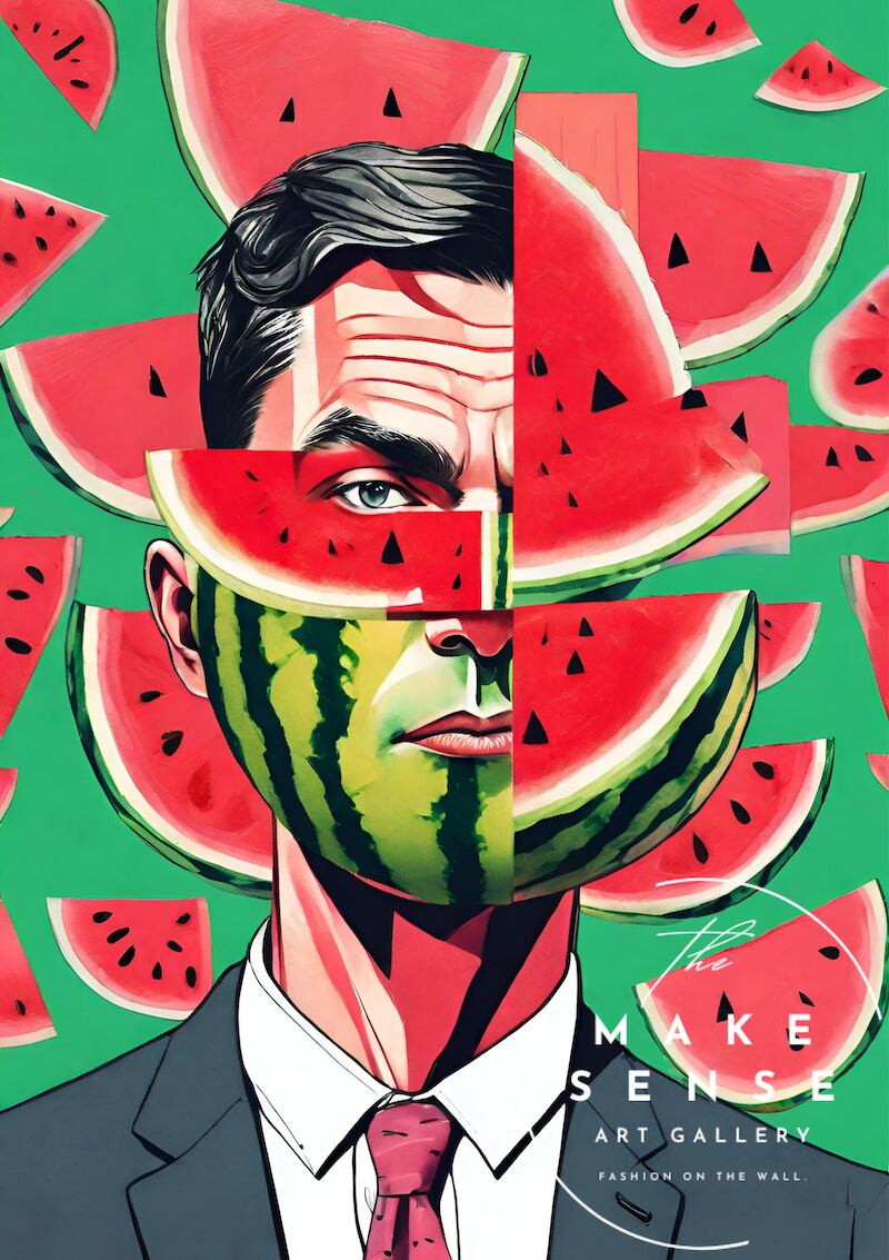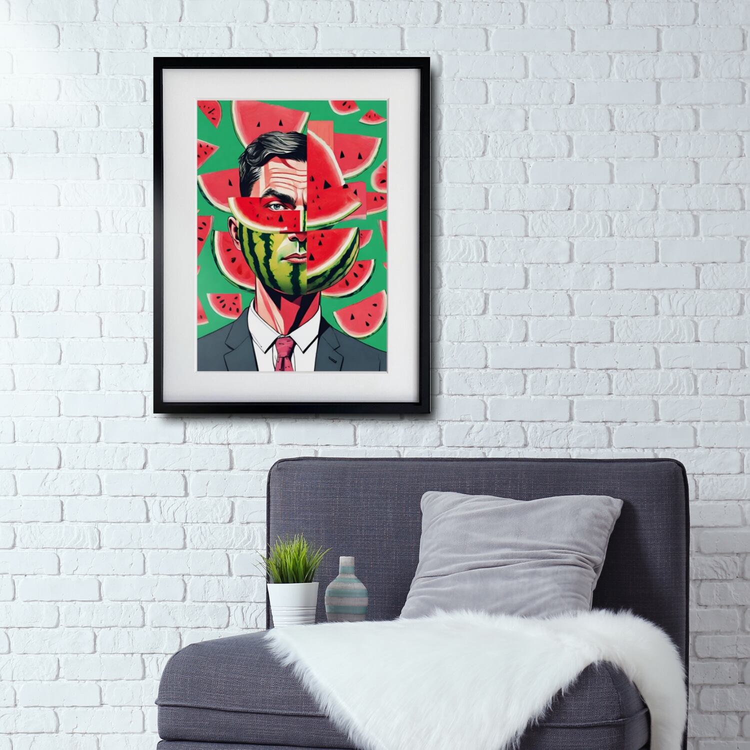 Watermelon Man|スイカのポップアートポスター|遊び心あふれるインテリアに最適|額縁セット・国内生産・A4ポスター