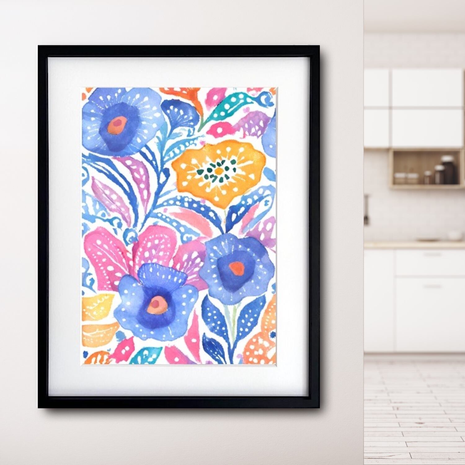 Delight|鮮やかな色彩の抽象アートポスター|モダン・北欧・ナチュラルに合う明るいインテリア額縁付きA4ポスター