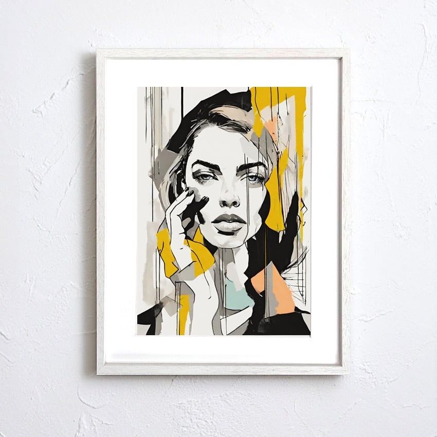 Ture|女性肖像をくすみカラーで描くアブストラクトアートポスター|大人の空間を彩るモダンインテリア額縁付き国内生産A4ポスター