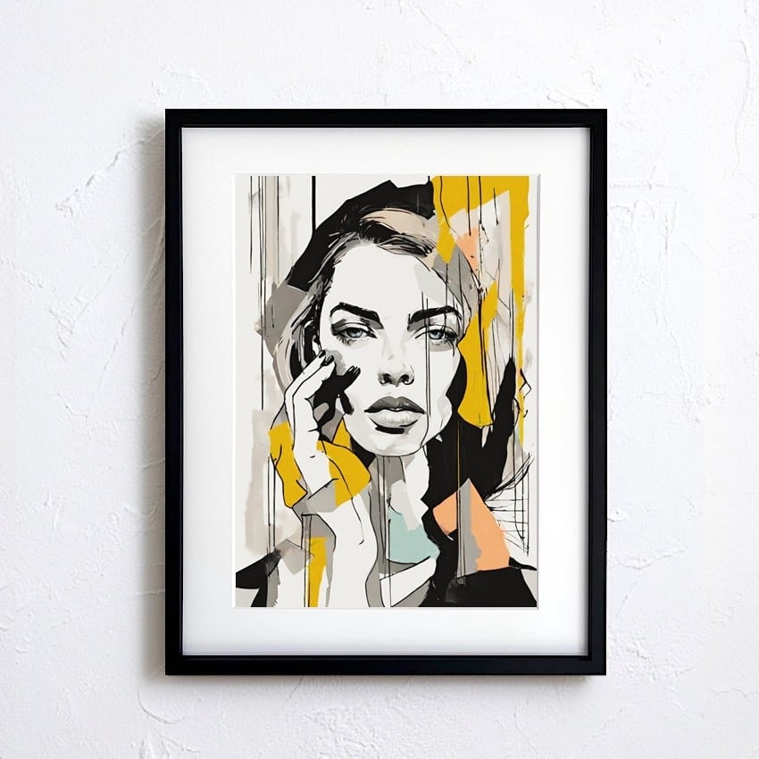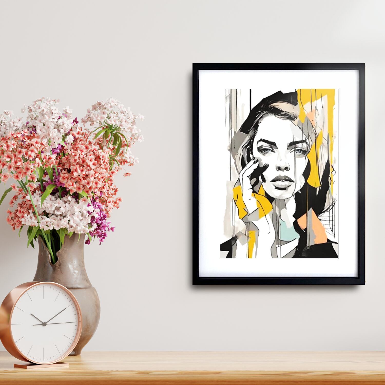 Ture|女性肖像をくすみカラーで描くアブストラクトアートポスター|大人の空間を彩るモダンインテリア額縁付き国内生産A2ポスター