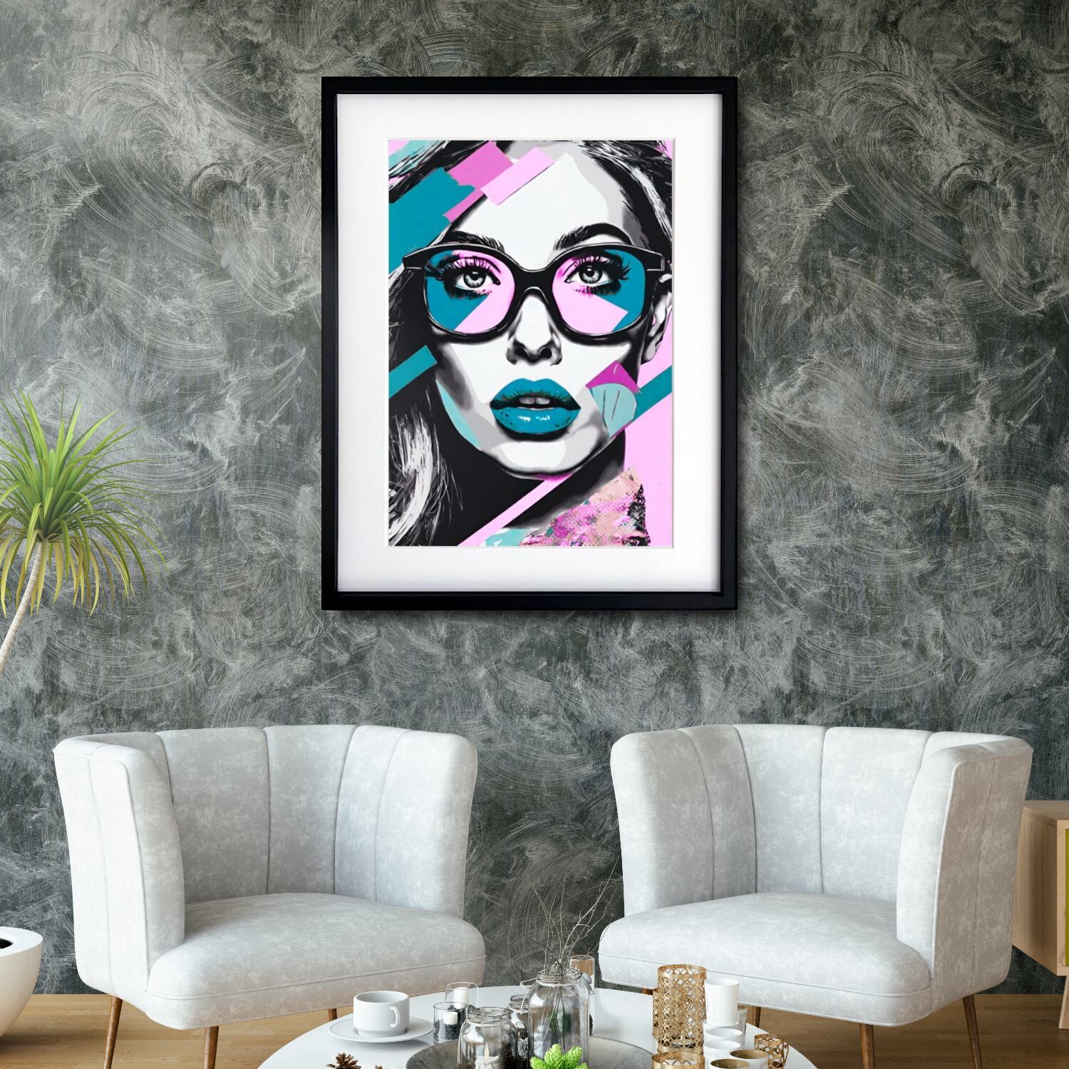 女性肖像 × アブストラクトが融合した、都会的で洗練された一枚。