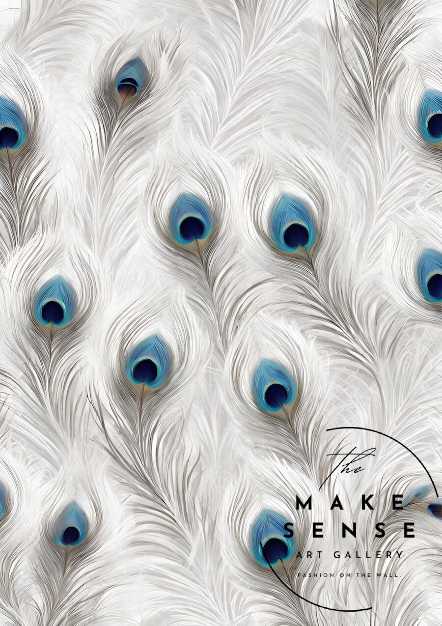 孔雀の羽根の優雅さと神秘的なパターンを落とし込んだラグジュアリーアートポスター。