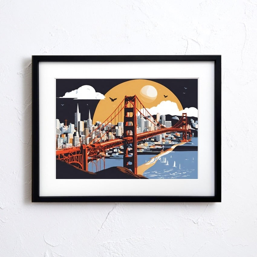 San Francisco|都市風景を描くコンテンポラリーアートポスター|西海岸の雰囲気を纏うスタイリッシュな額縁付きインテリアA3ポスター