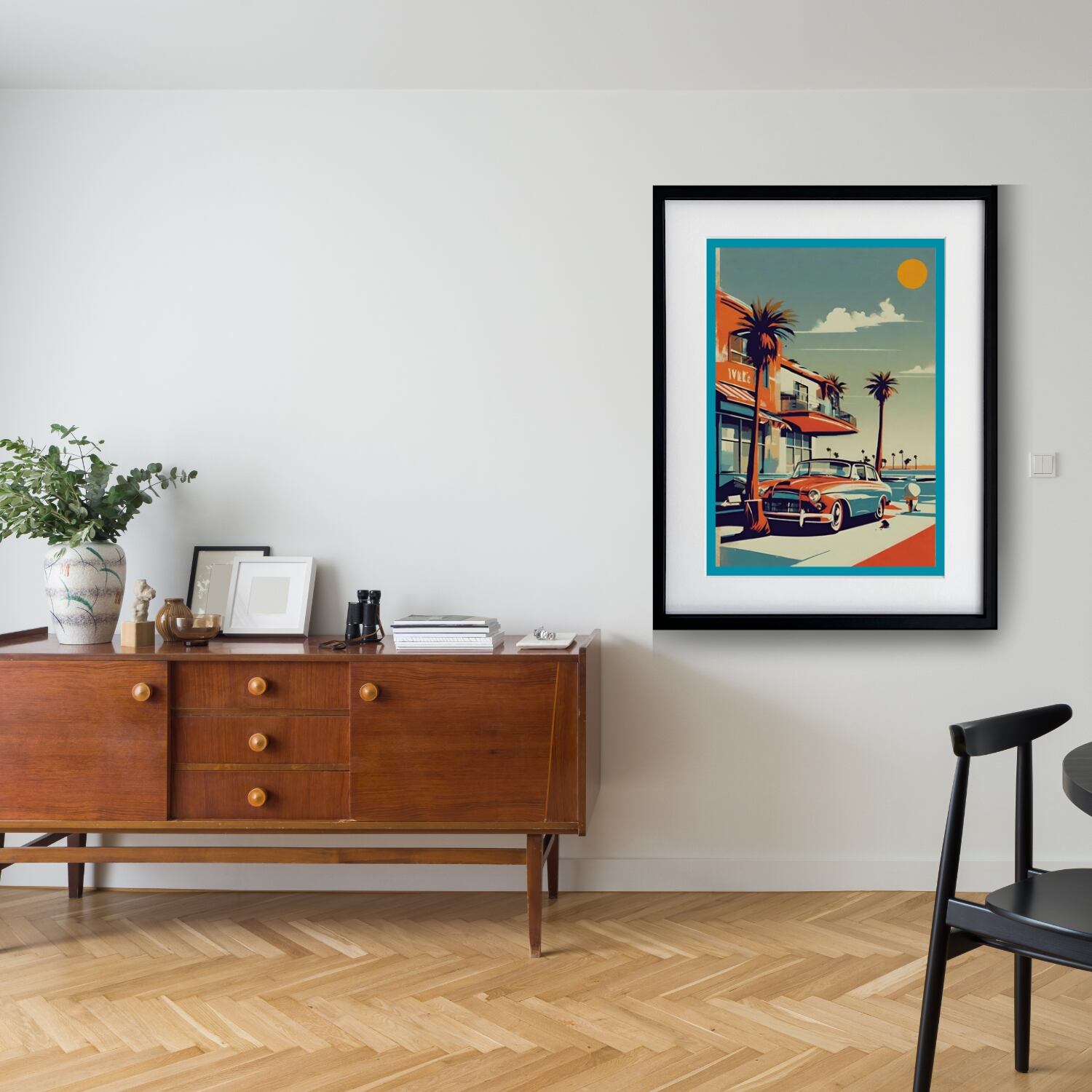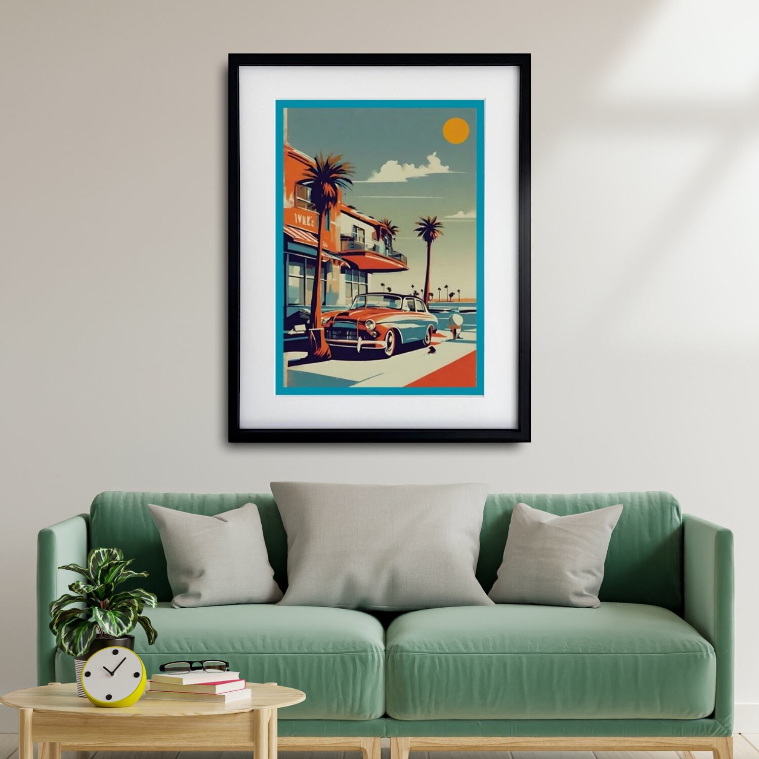 West Side|パームツリー×クラシックカーのアメリカンヴィンテージアート|西海岸ストリート感が映えるカリフォルニア抽象ポスターA3ポスター