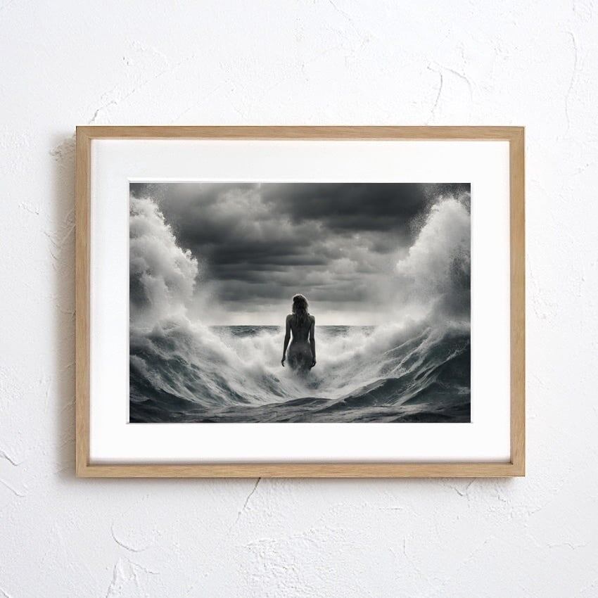 Courage は、海の力強さと静けさを同時に感じられるモノクロフォトアート。