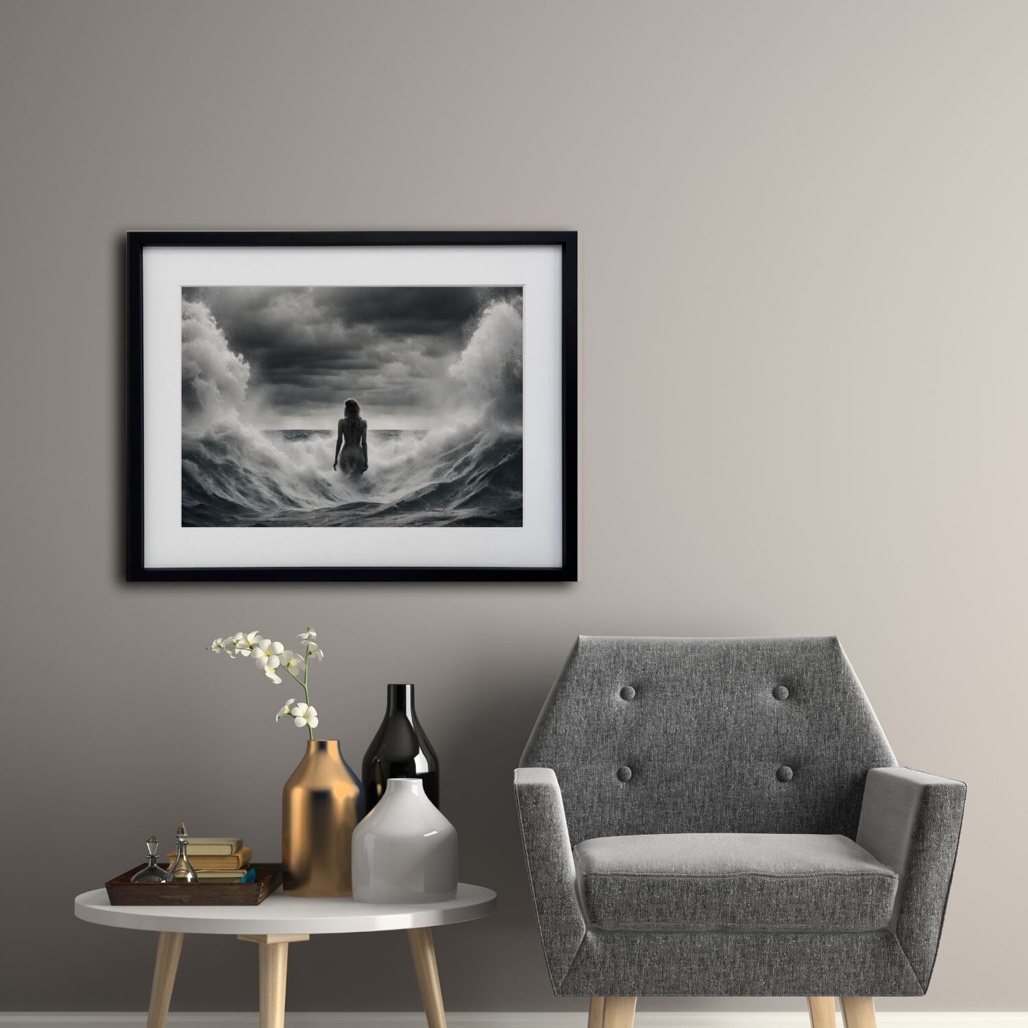Courage|波が砕ける瞬間を切り取ったモノクロ写真アートポスター|海・飛沫の迫力が映えるモダン×ミニマルインテリア向けフォトグラフA2ポスター