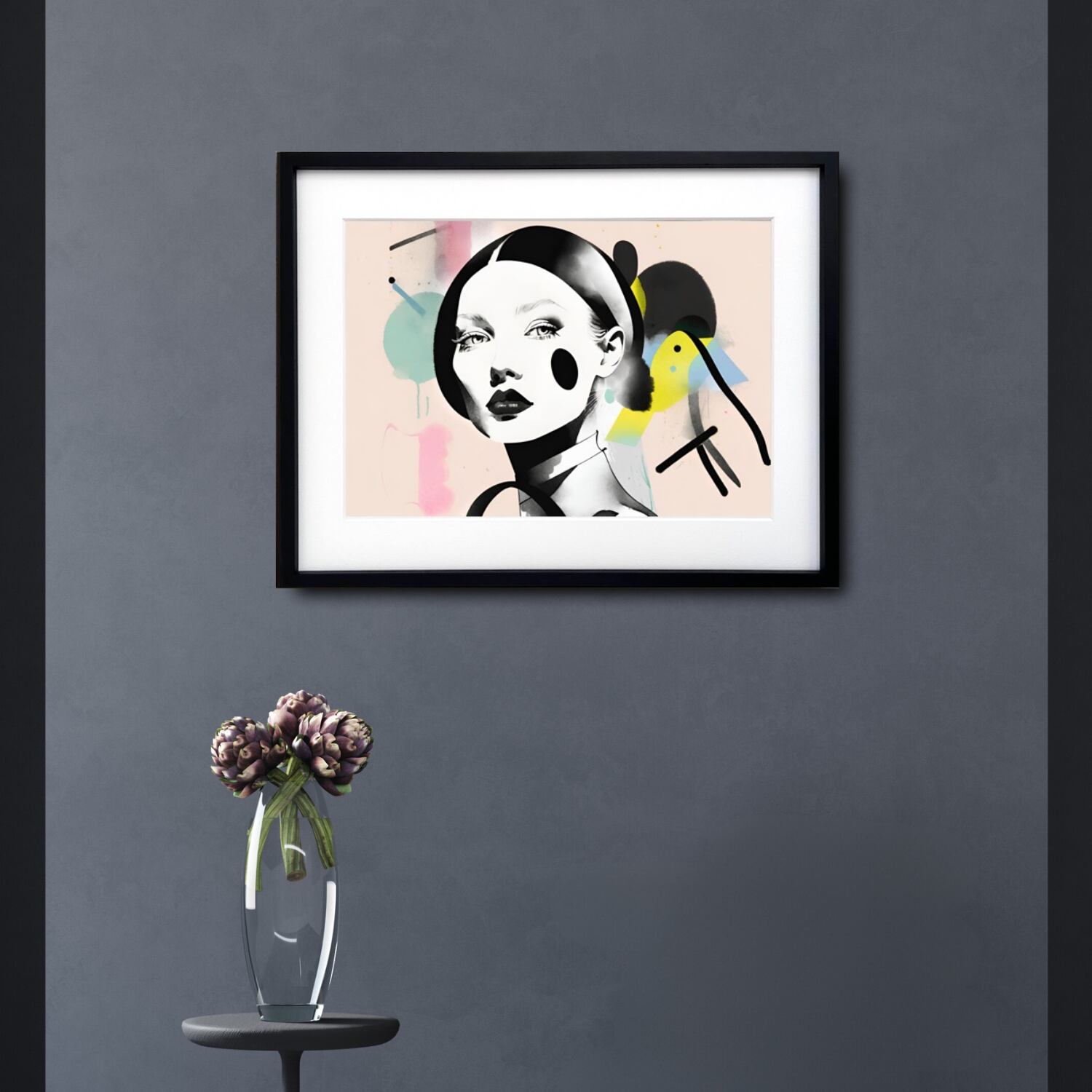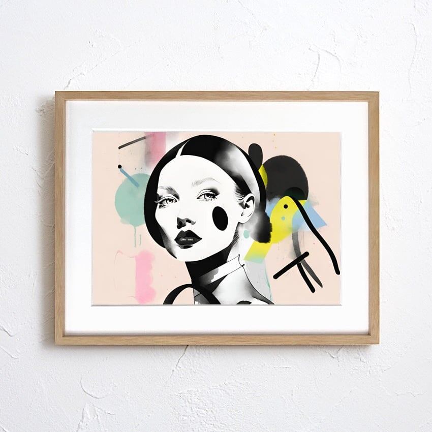 Festive は、女性の視線と抽象表現が重なり合う、ファッショナブルでトレンド感あるイラストアート。