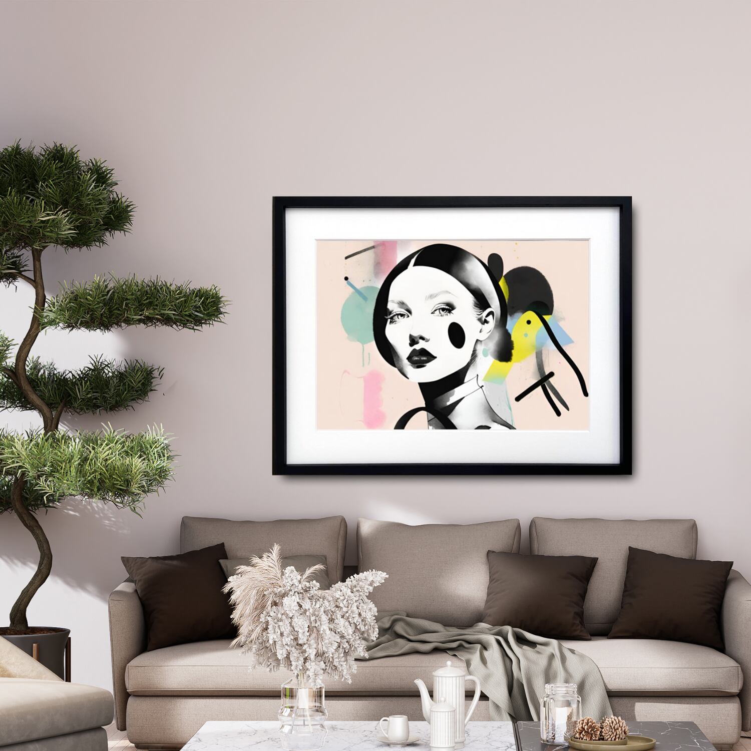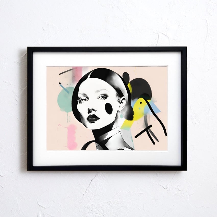 Festive は、女性の視線と抽象表現が重なり合う、ファッショナブルでトレンド感あるイラストアート。