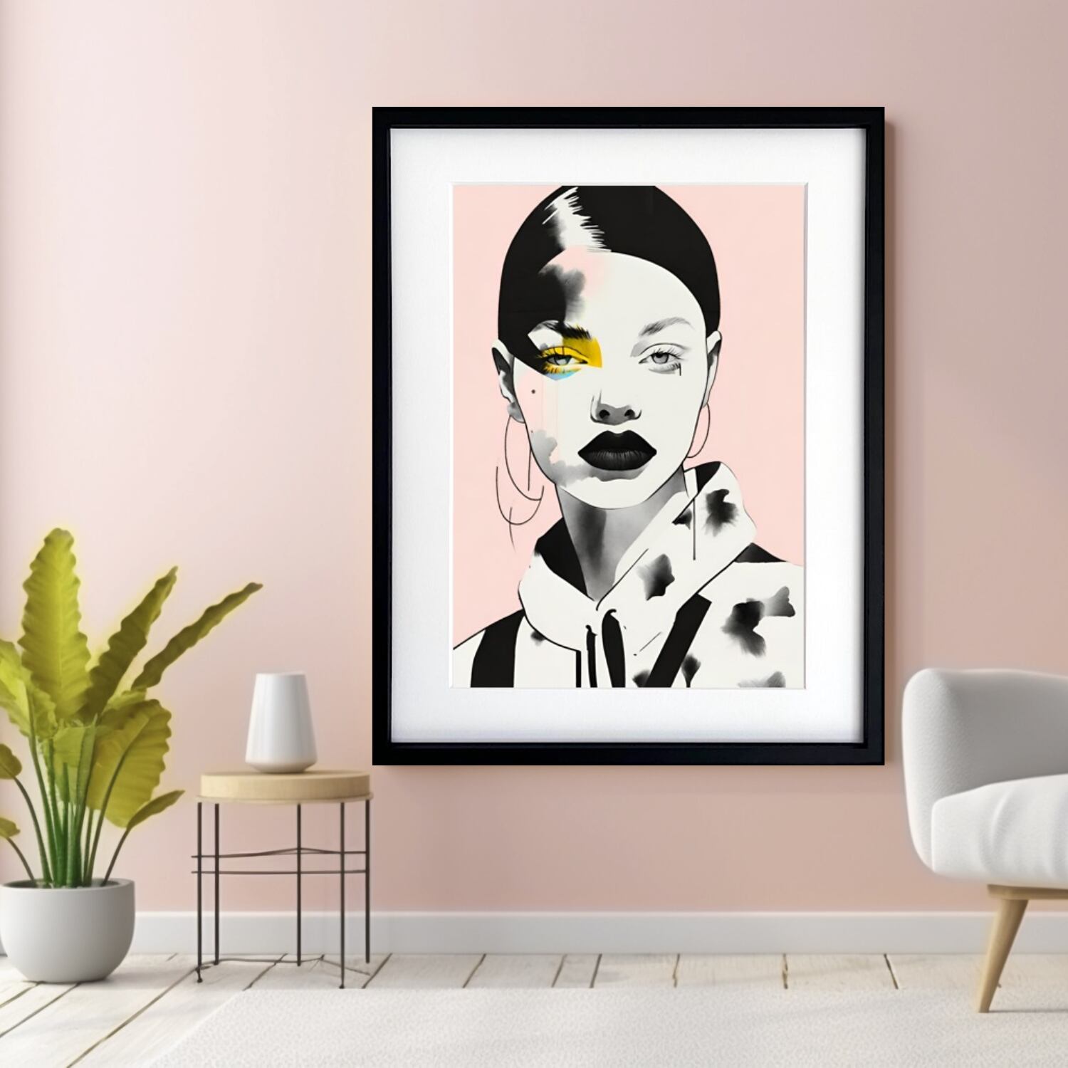 Pure は、女性のまなざしと抽象美を融合した、ファッショナブルで洗練された一枚。