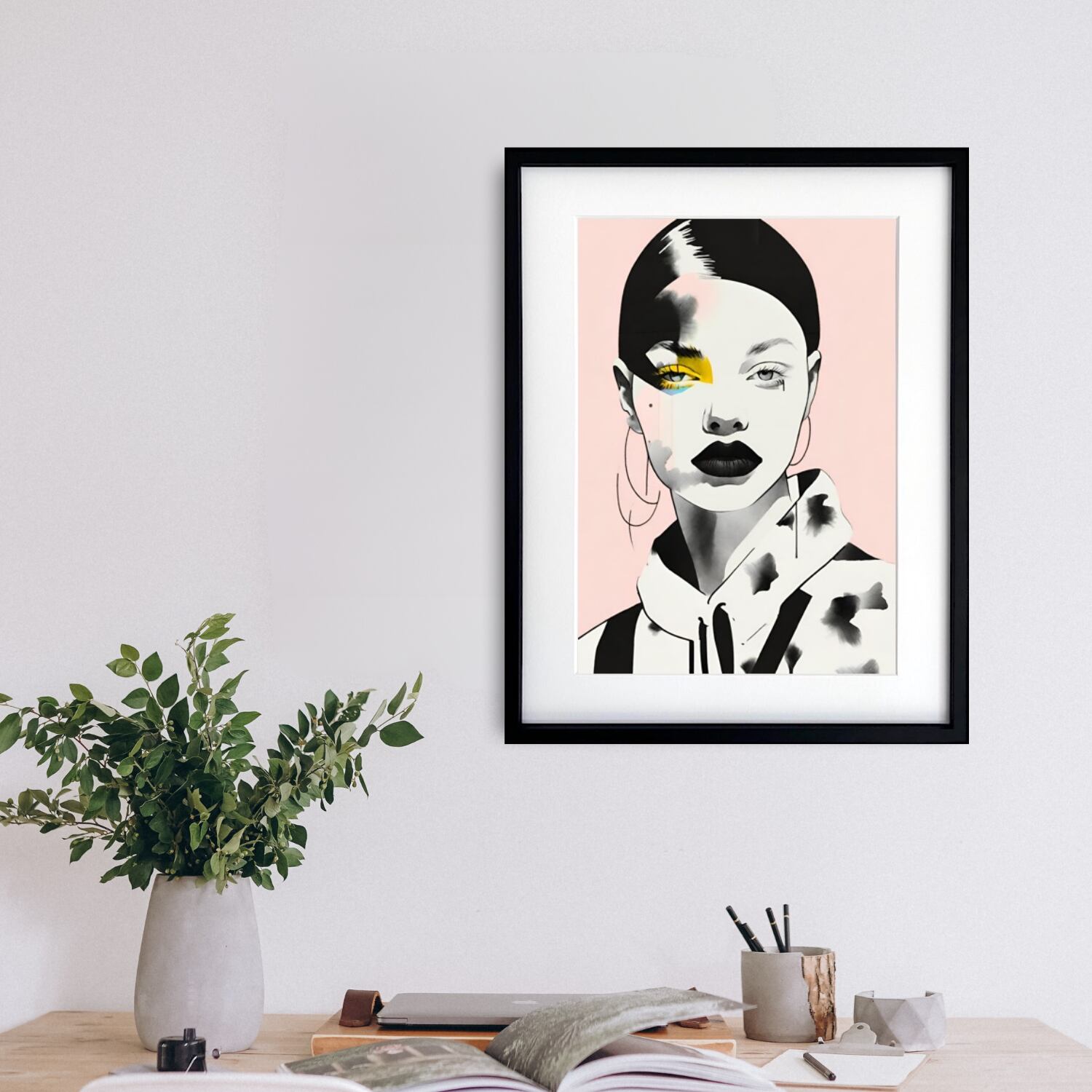 Pure|女性をくすみカラーで描くファッションイラストアートポスター|北欧・モダン・ホテルライクに映える上品な抽象インテリアA4ポスター