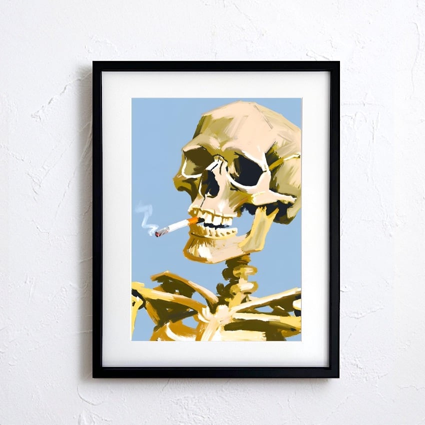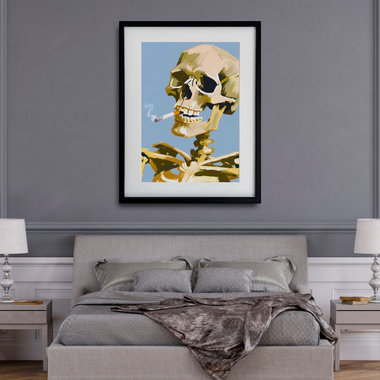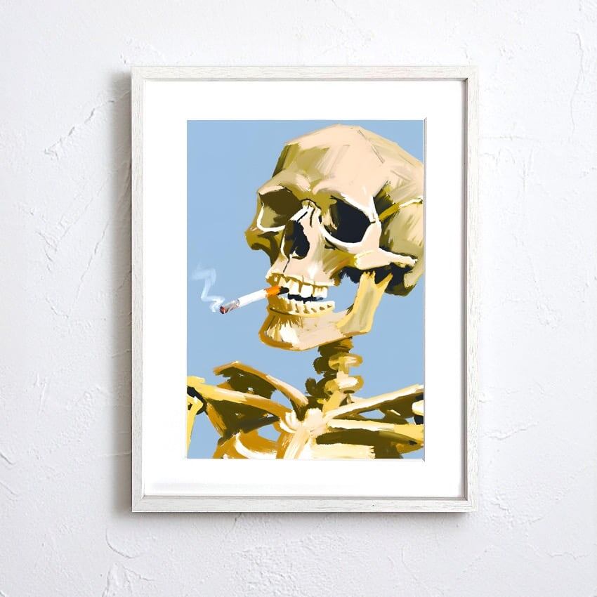 Smoker|スカルと煙が織りなすダークポップアートポスター|モノクロの余韻が漂うスタイリッシュなインテリアに最適A4ポスター
