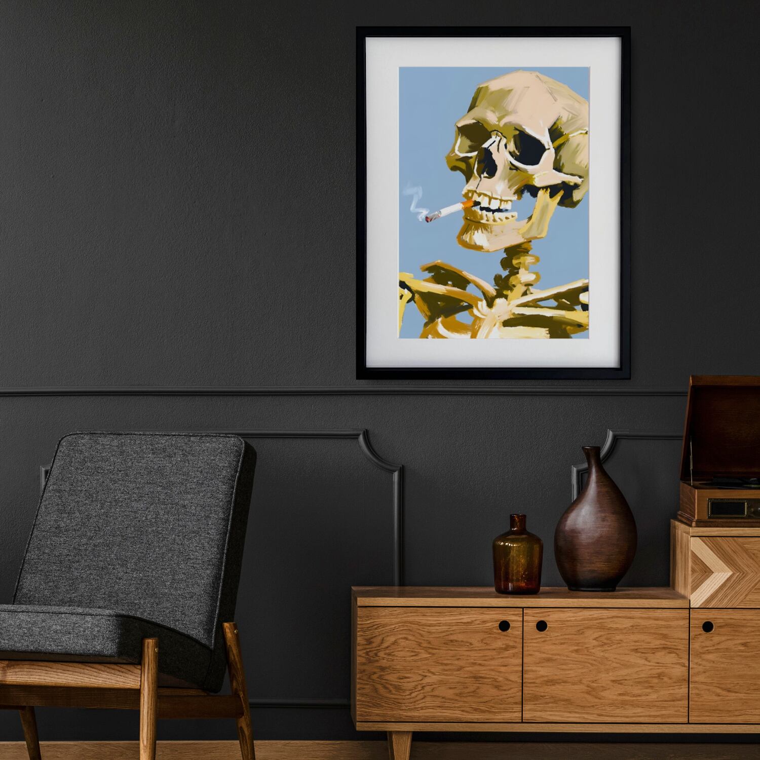 Smoker|スカルと煙が織りなすダークポップアートポスター|モノクロの余韻が漂うスタイリッシュなインテリアに最適A2ポスター